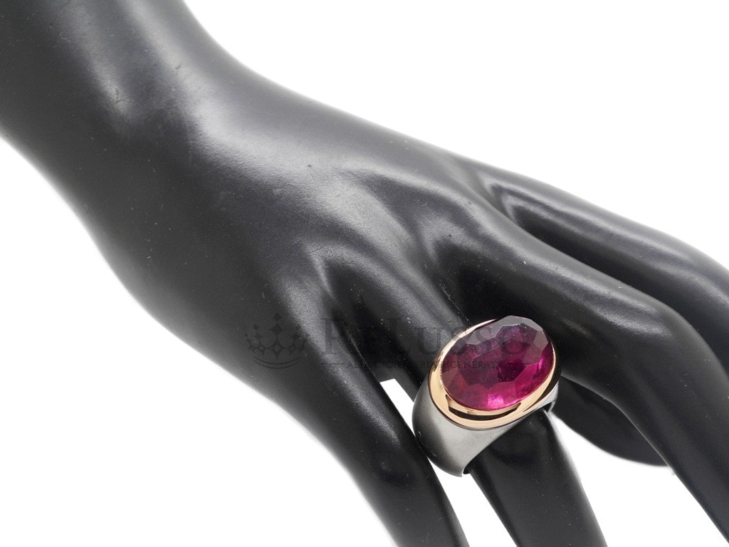 Bague Pomellato de la collection Iceberg, en or blanc sablé et or jaune 18 carats avec une Tomalina taillée facettée.