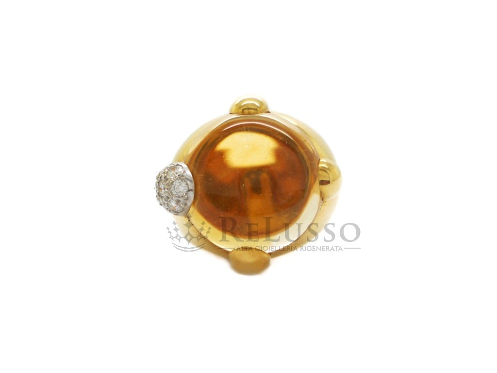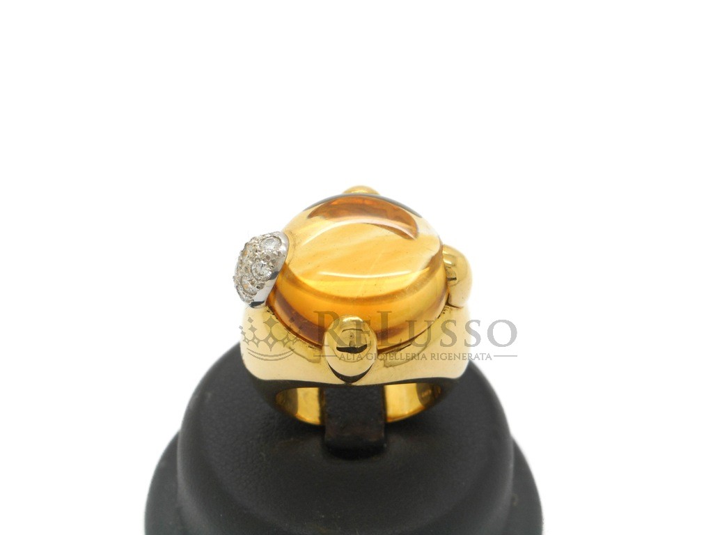 Bague Pomellato Griffe en or jaune avec quartz citrine et diamants.