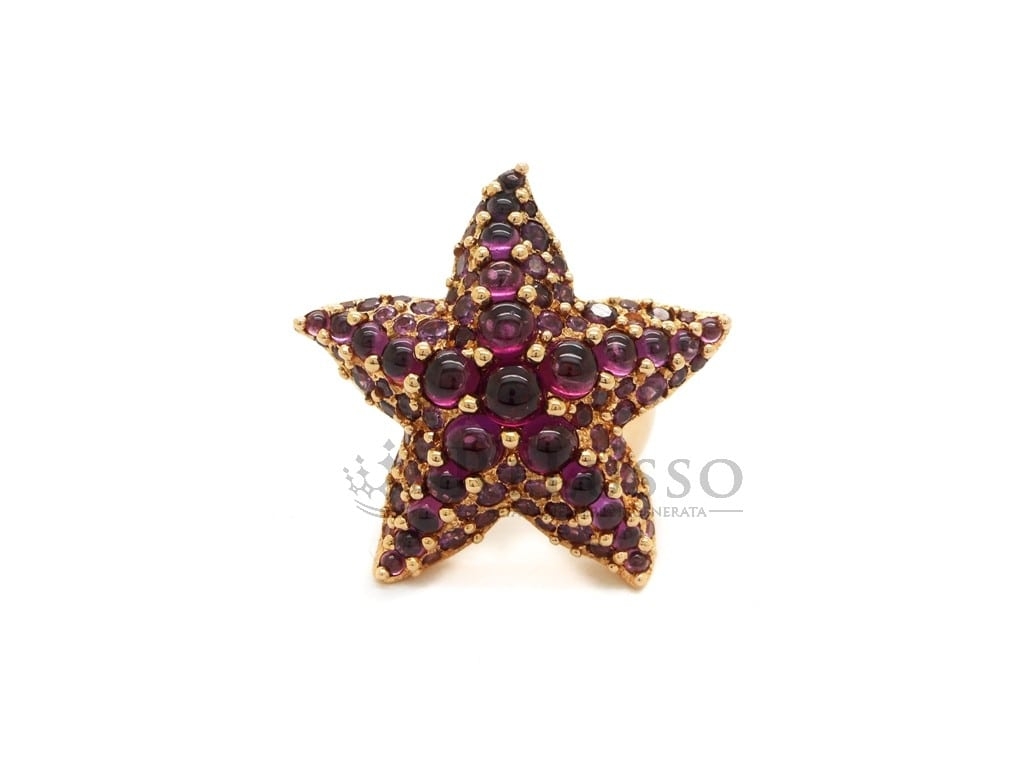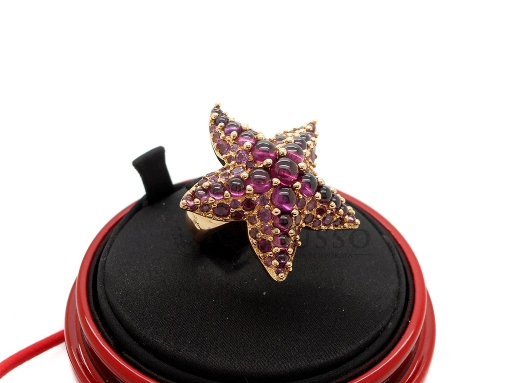Bague Pomellatode la célèbre collection Sirene, en or rose 18 carats et grenat rodolite taille cabochon. La bague est une taille 14 ITA, légèrement modifiable.