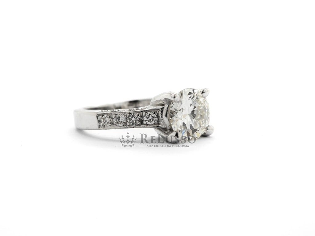 Bague solitaire avec diamant de 1,15 ct et diamants latéraux de 0,20 ct en or blanc.