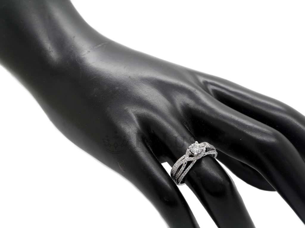 Bague solitaire en or blanc avec diamant de 0,25 ct et contour de 0,21 ct.