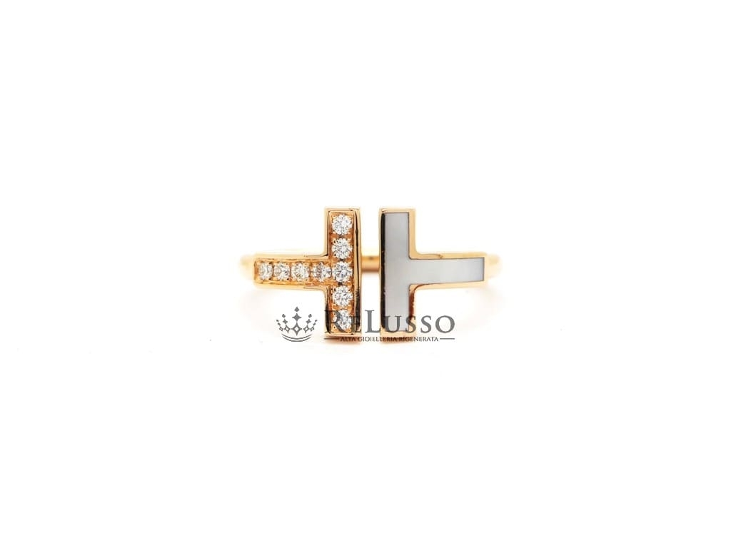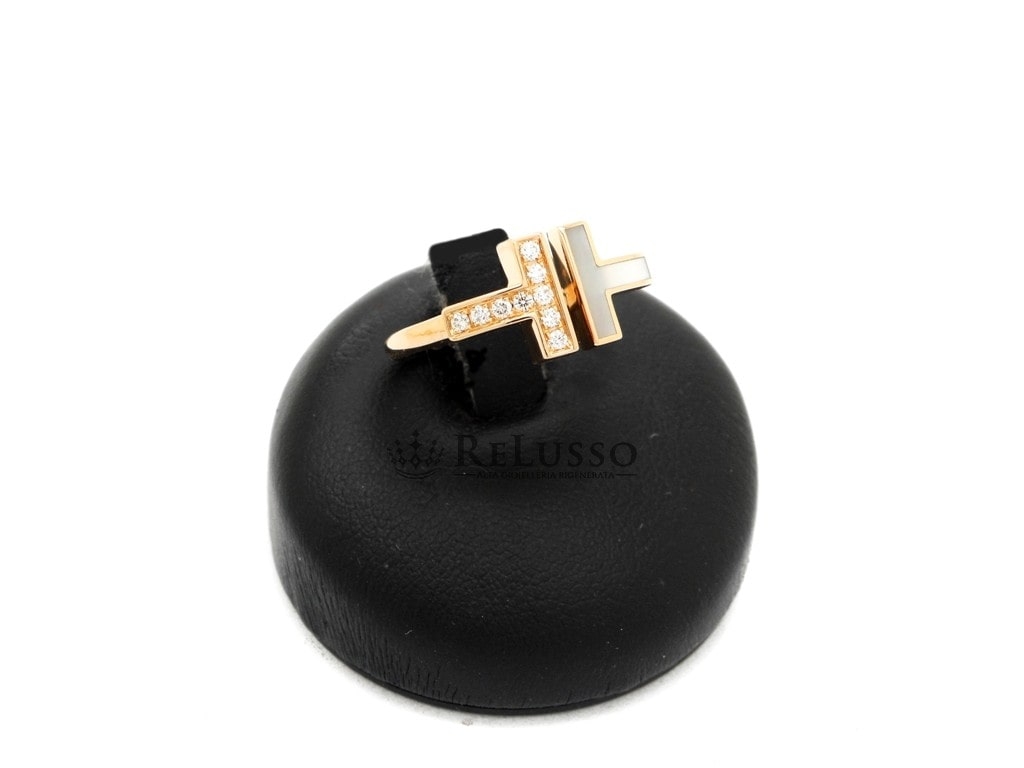 Tiffany & Co. Wire en or rose 18 ct avec diamants 0,07 ct et nacre, de la collection Tiffany T. Taille 11 ITA.