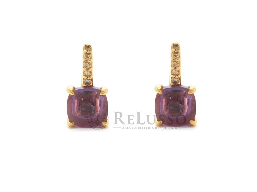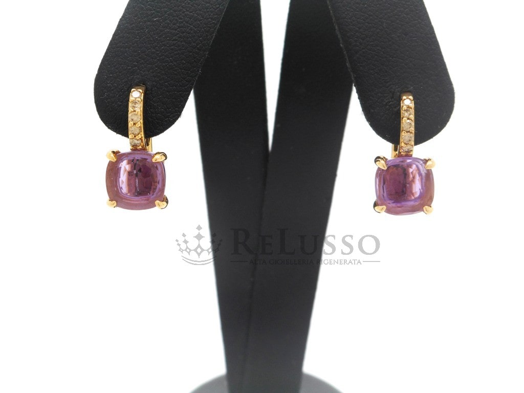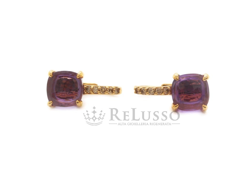 Boucles d’oreilles Baby Pomellato en or rose, améthyste et diamants bruns.