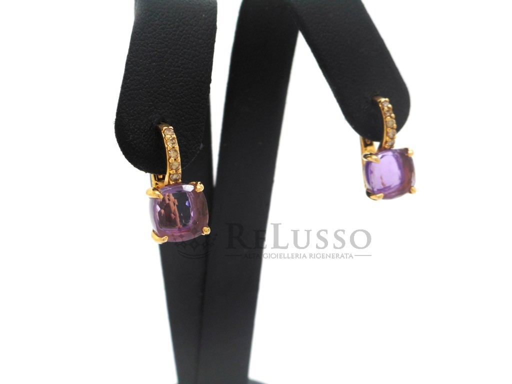 Boucles d’oreilles Pomellato en or rose 18 carats avec améthyste taille facette et 0,16 ct de diamants bruns, de la célèbre Baby Pomellato collection.