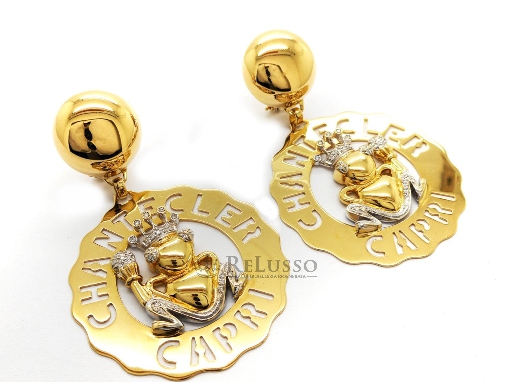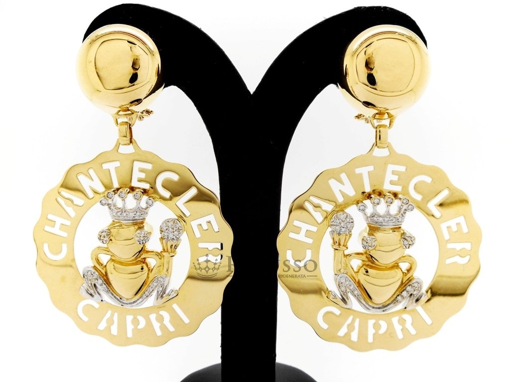 Boucles d’oreilles grand modèle Chantecler Frog Prince, en or jaune et blanc 18 ct avec diamants, de la célèbre collection Logo Chantecler.