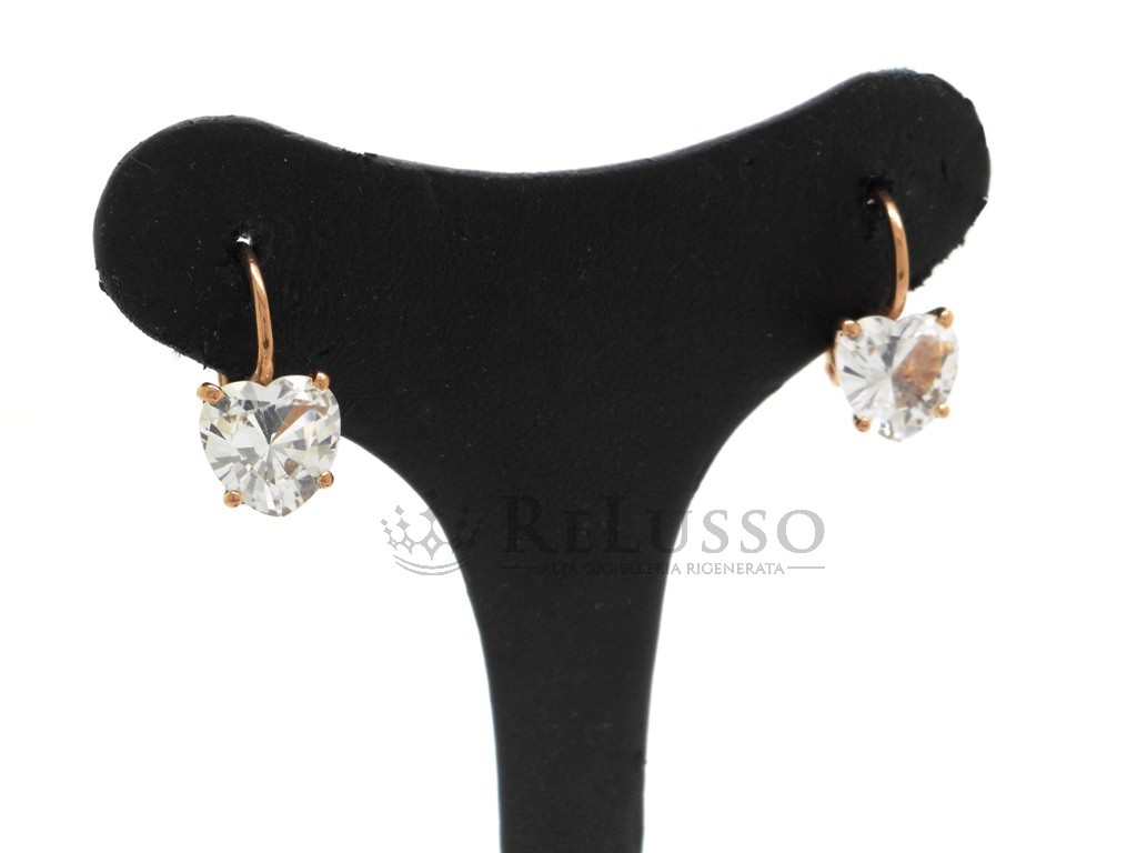 Boucles d’oreilles Dodo en or rose 9 carats (or 375) avec deux saphirs blancs synthétiques en forme de cœur, de la célèbre collection 100% Amore.
