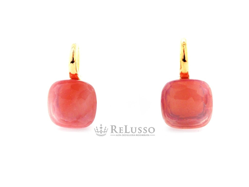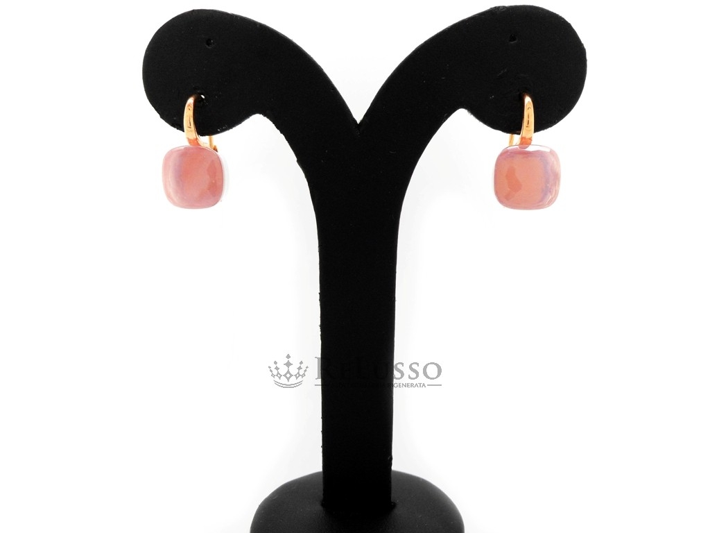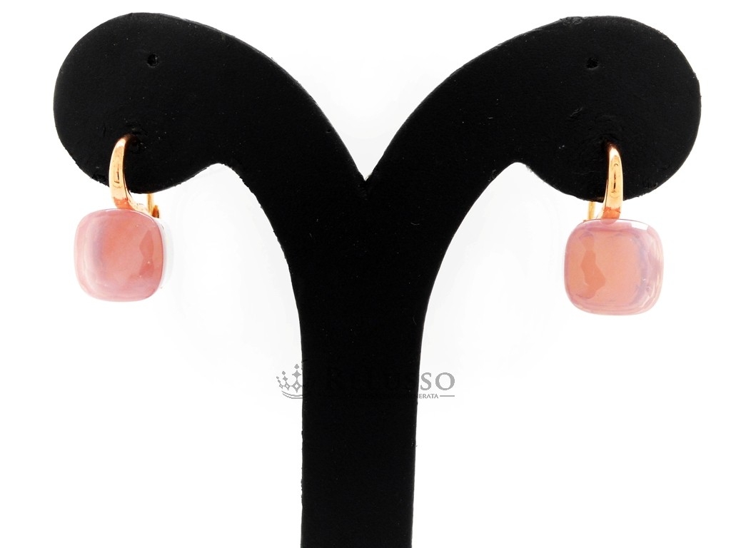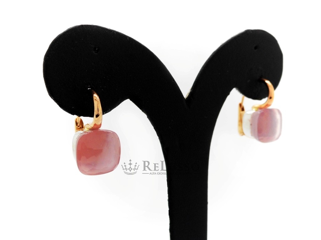Boucles d’oreilles Nudo Pomellato en or rose et quartz rose facetté.