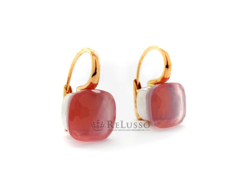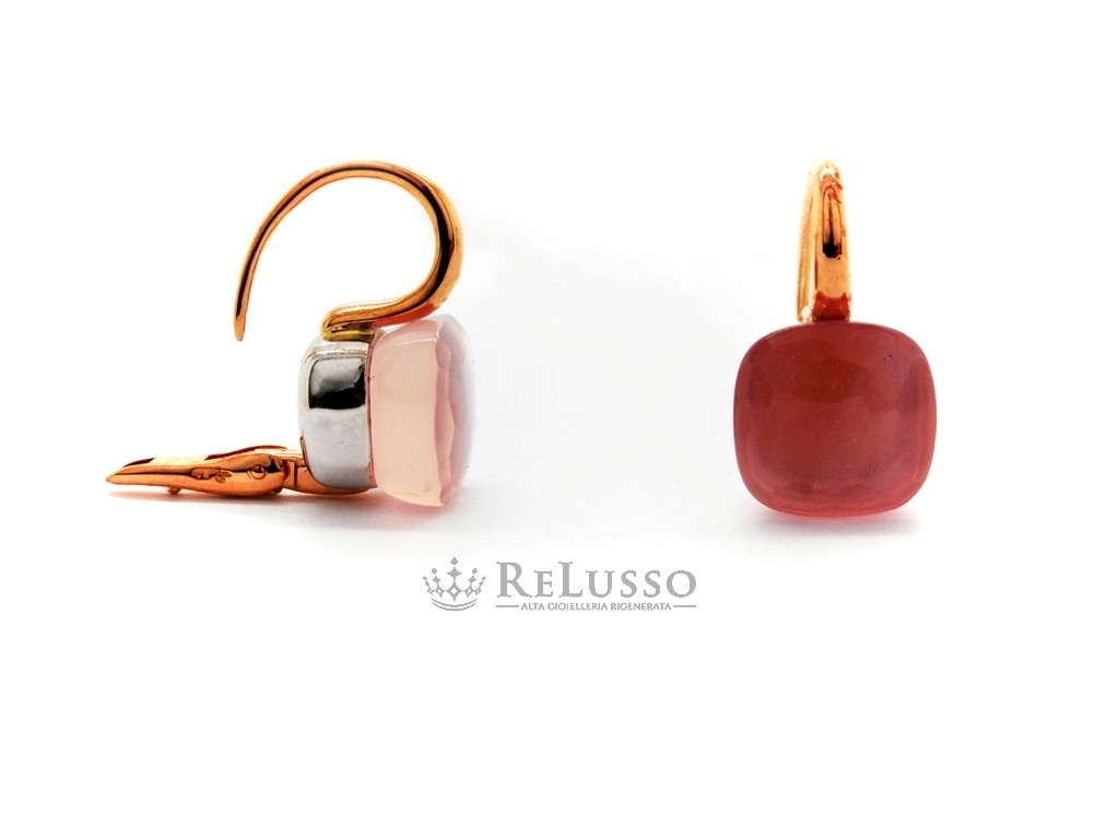 Boucles d’oreilles Pomellato en or rose 18 ct avec lunette en or blanc et quartz rose facetté, de la célèbre collection Nudo.