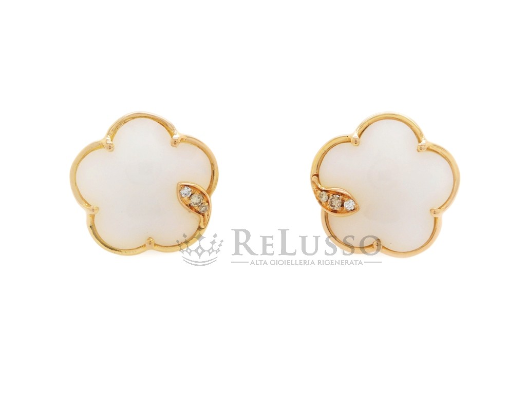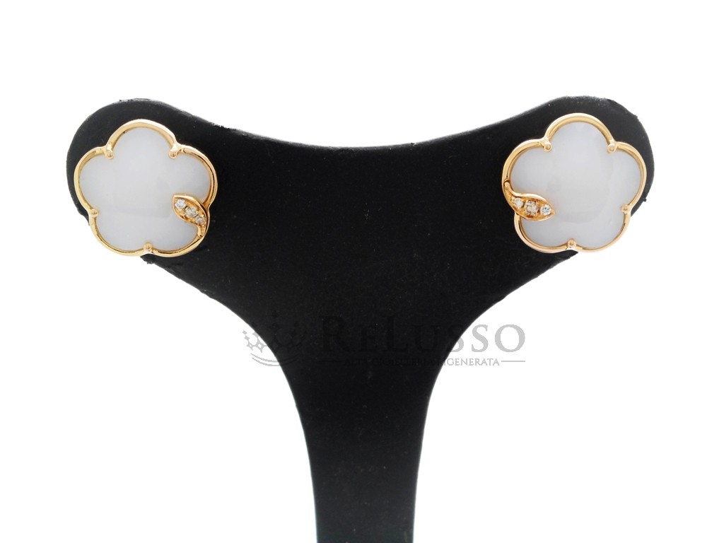Boucles d’oreilles Pasquale Bruni de la collection Petit Joli en or rose 18 carats avec agate blanche et diamants pour un poids total de 0,06 ct.