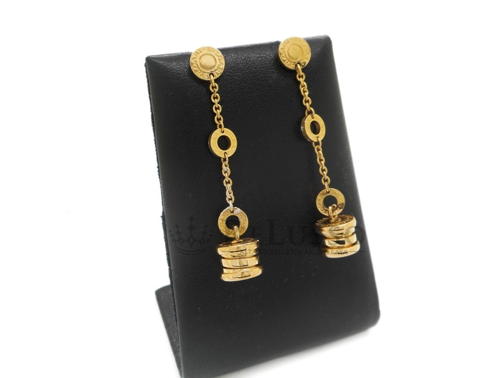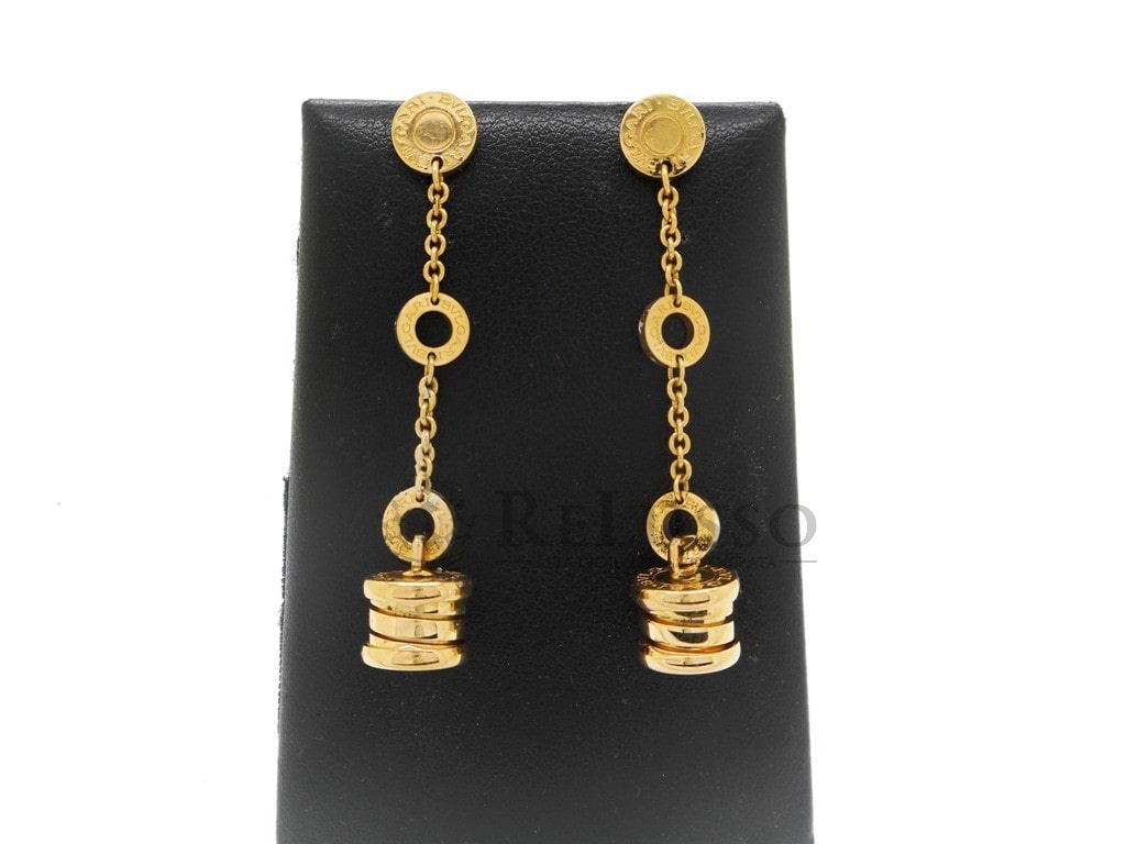 Boucles d’oreilles pendantes Bulgari en or jaune 18 carats de la célèbre collection B.Zero1. Longueur 4,50cm.