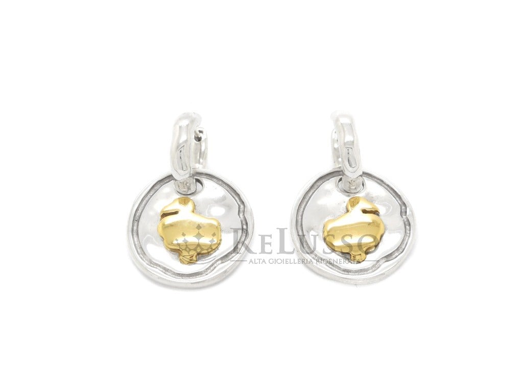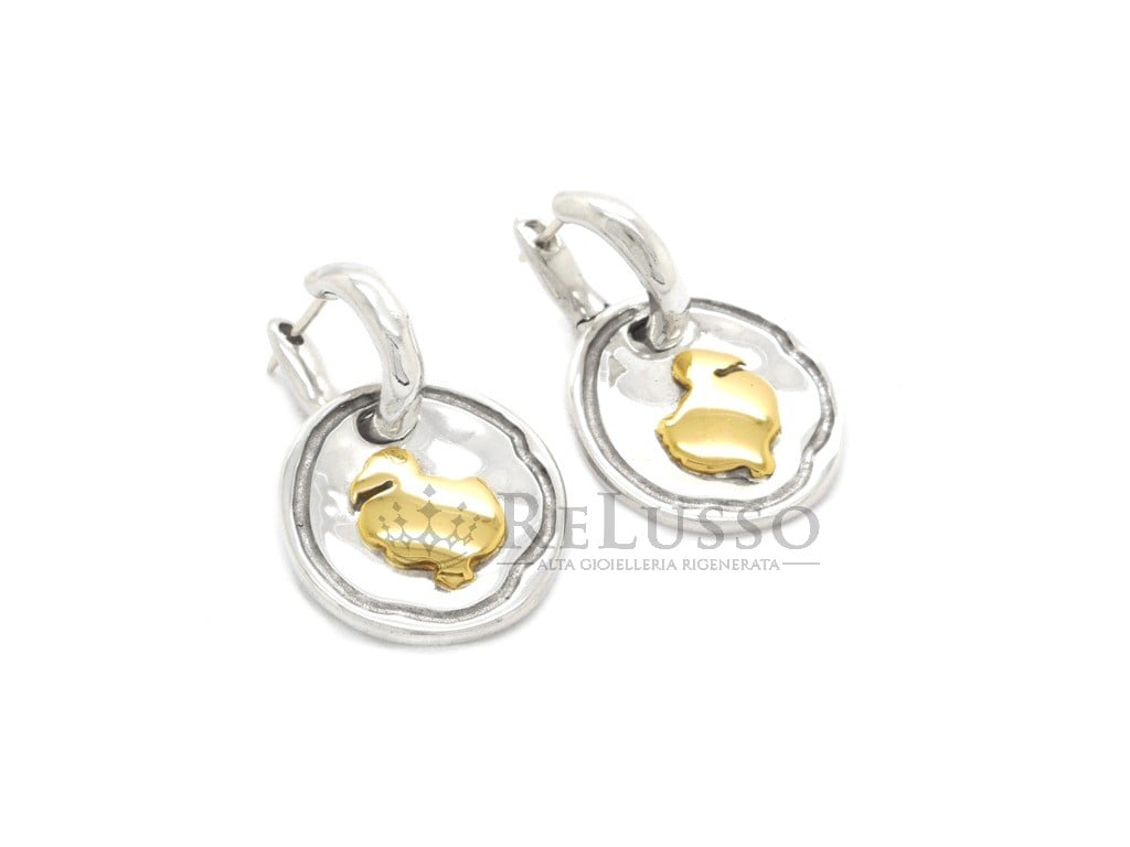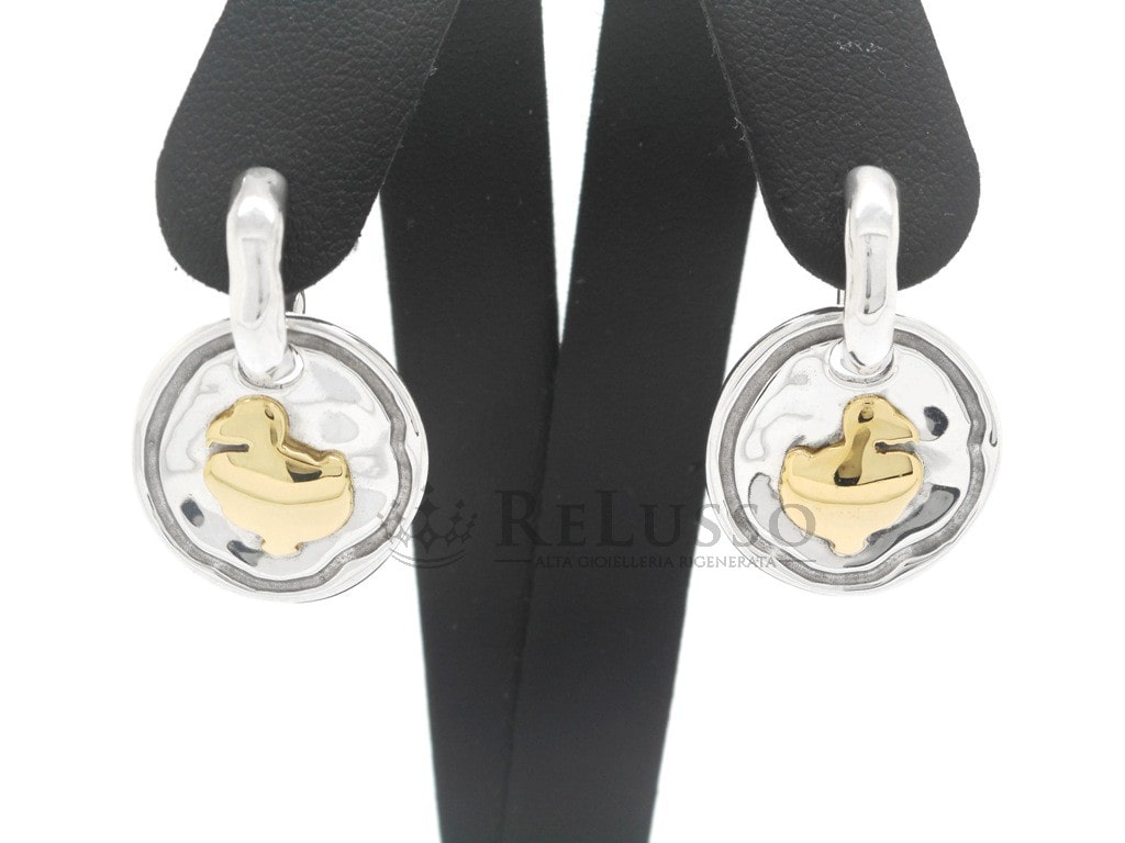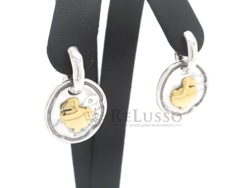 Boucles d’oreilles plaque Dodo en argent et or jaune 18 carats.