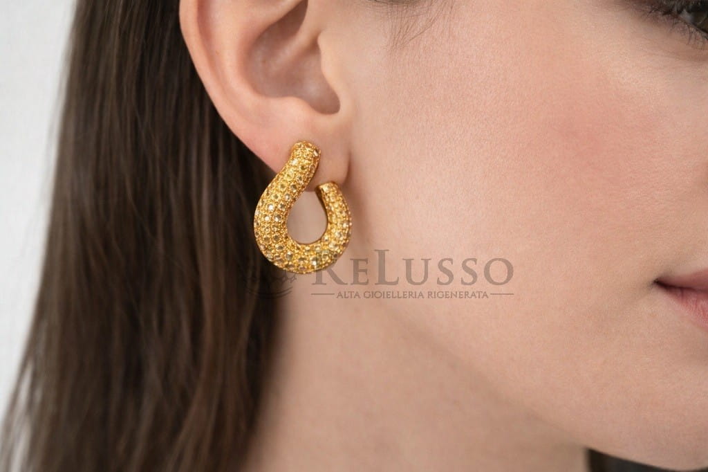 Réalisées en or et sublimées par un délicat pavé de saphirs jaunes d’un poids total estimé à environ 2,50 ct, elles séduisent par leur éclat chaud et sophistiqué. La teinte solaire des pierres dialogue harmonieusement avec le métal précieux, pour un résultat luxueux, élégant et immédiatement reconnaissable.