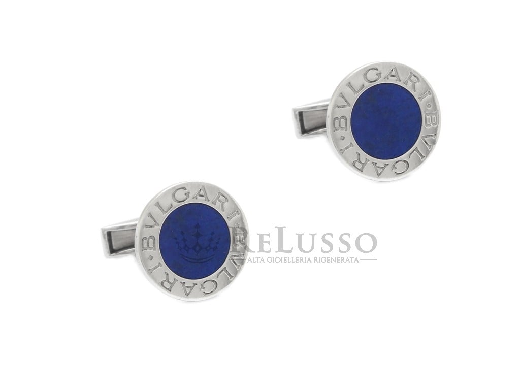 Boutons de manchette Bvlgari en argent sterling 925 avec Lapis Lazuli, de la collection Bvlgari-Bvlgari, l’une des collections les plus célèbres et les plus connues.