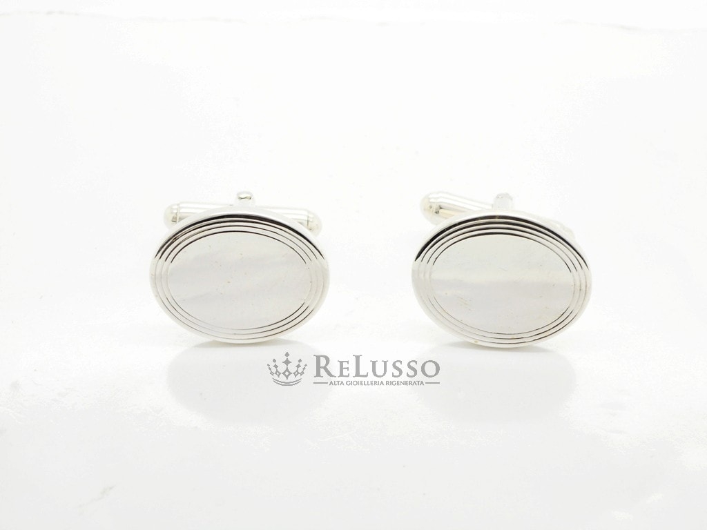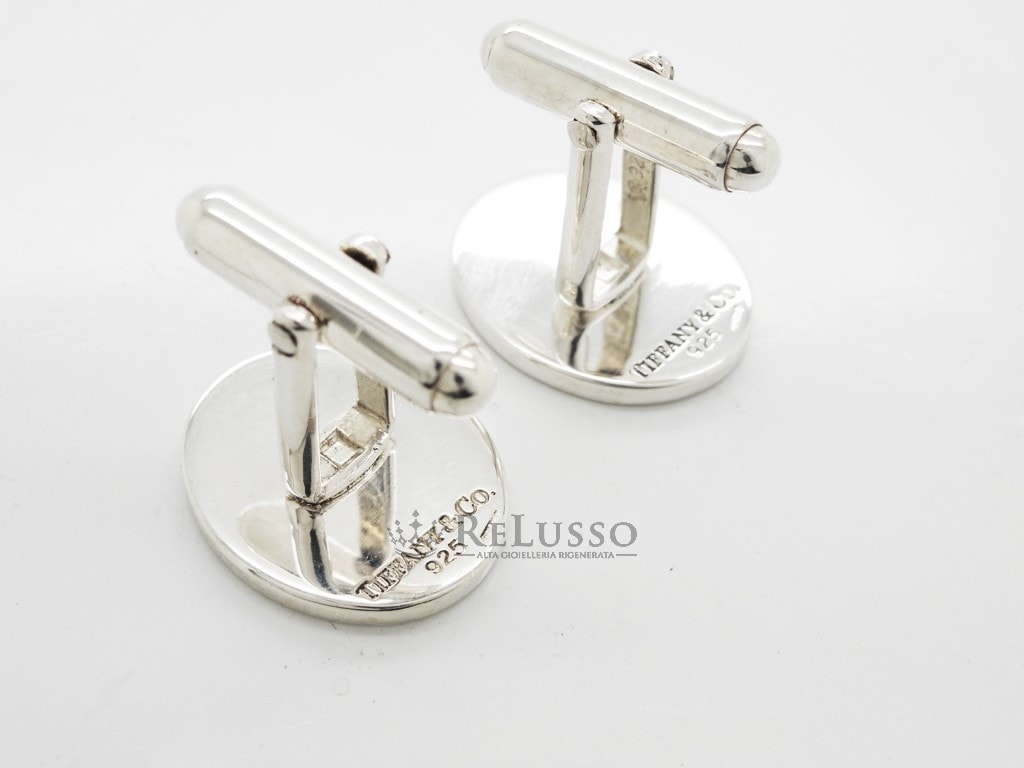 Boutons de manchette ovales damassés Tiffany & Co. en argent sterling 925.