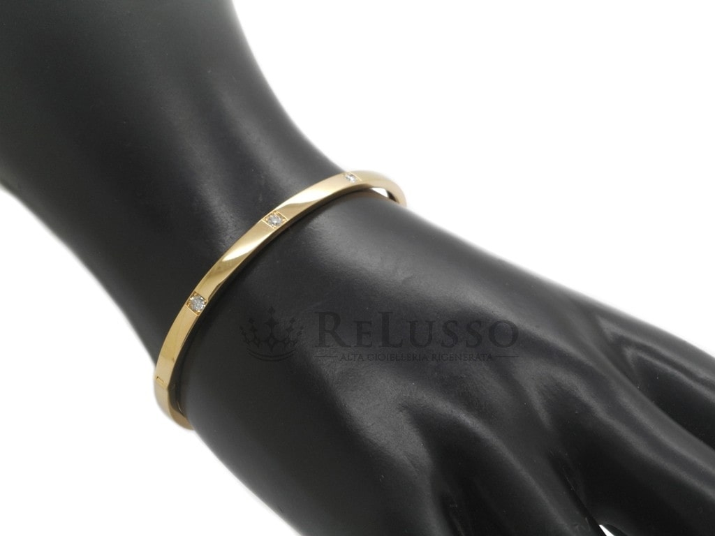 Bracelet Bucherer Modèle Classics en or jaune 18kt avec quatre diamants ronds taille brillant pour un poids total de 0,29ct.