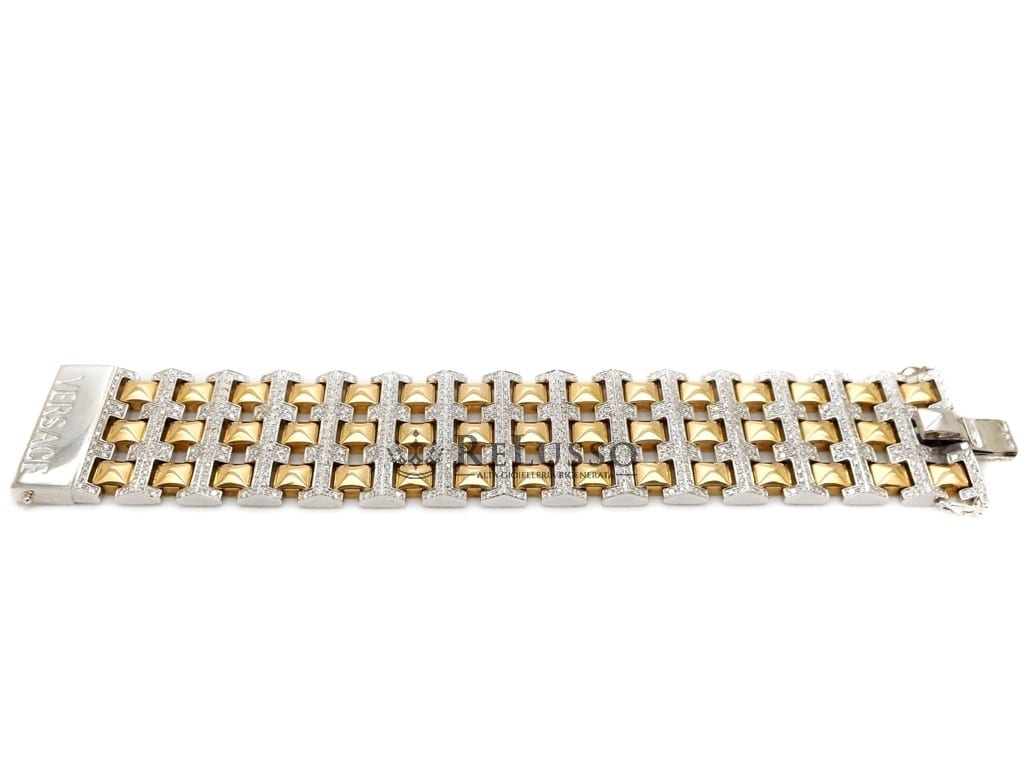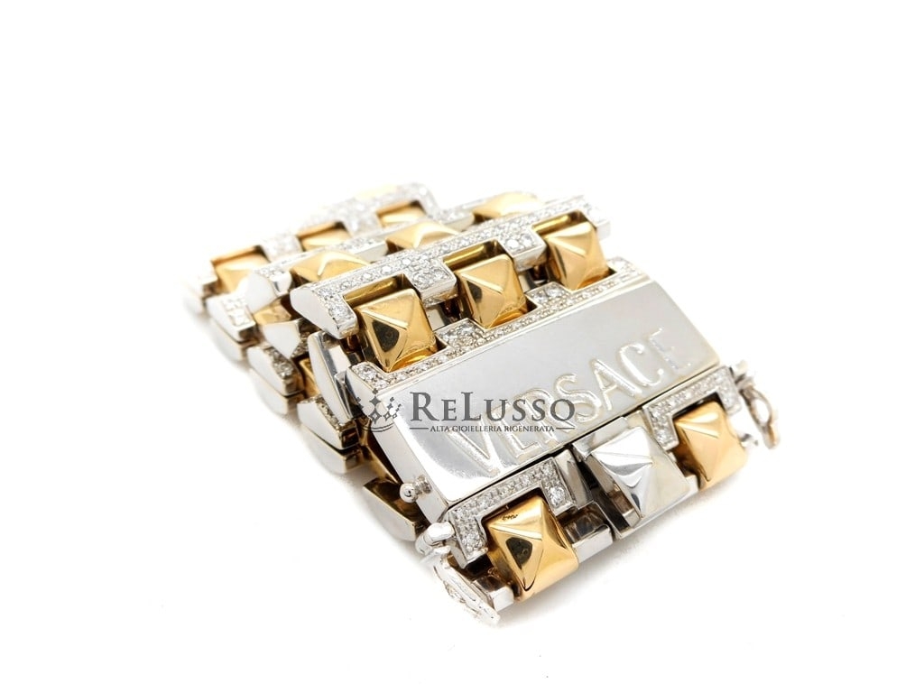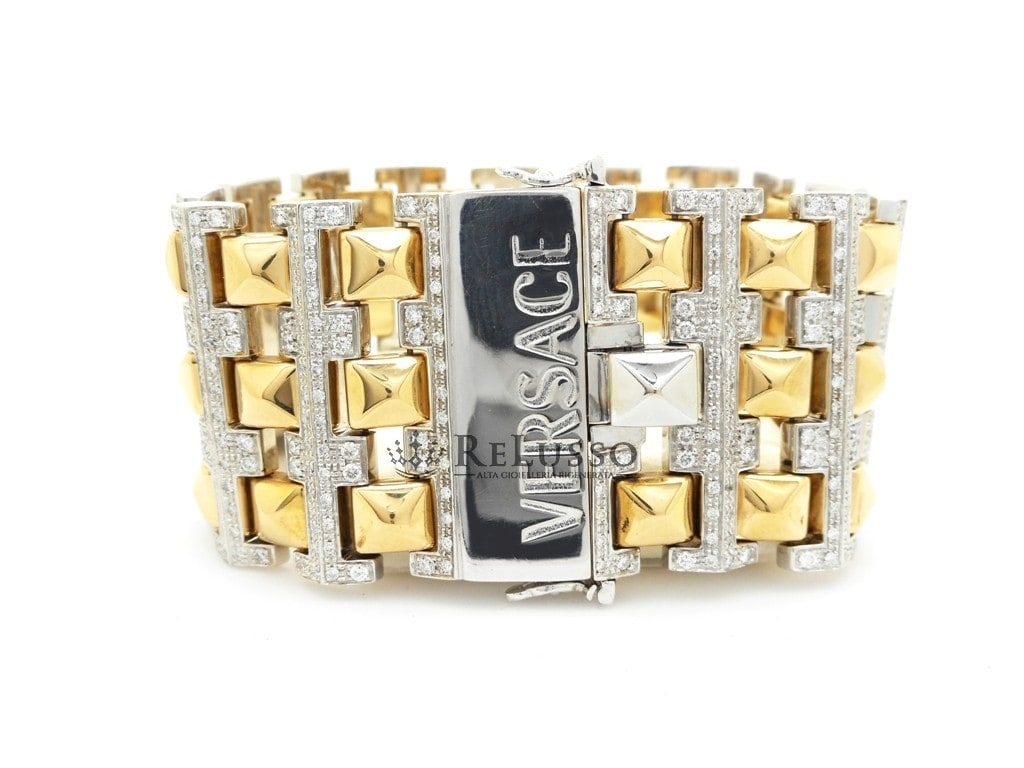 Bracelet Versace Cleopatra en Or Jaune et Blanc 18 kt avec 5,00 ct de Diamants – Rare, Hors Production et Proposé à un Prix Avantageux.