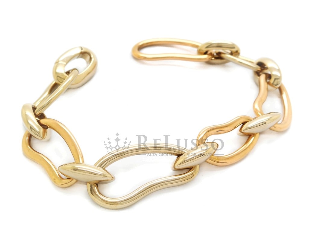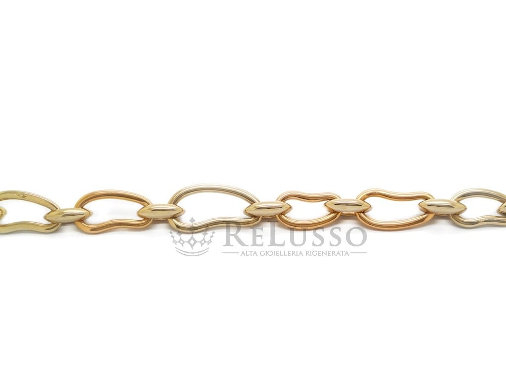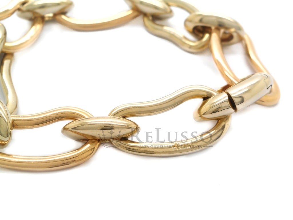 Bracelet Pomellato en or blanc, jaune et rose 18 carats de la collection Paisley. Le bracelet pèse 43,44g. et mesure 20,00 cm de long.