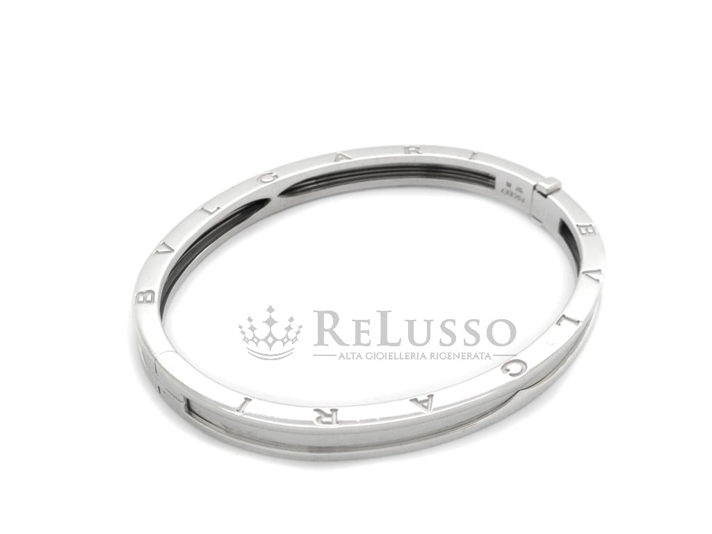 Bracelet rigide Bulgari en or blanc 18 carats de la célèbre collection B.zero1. Taille M.