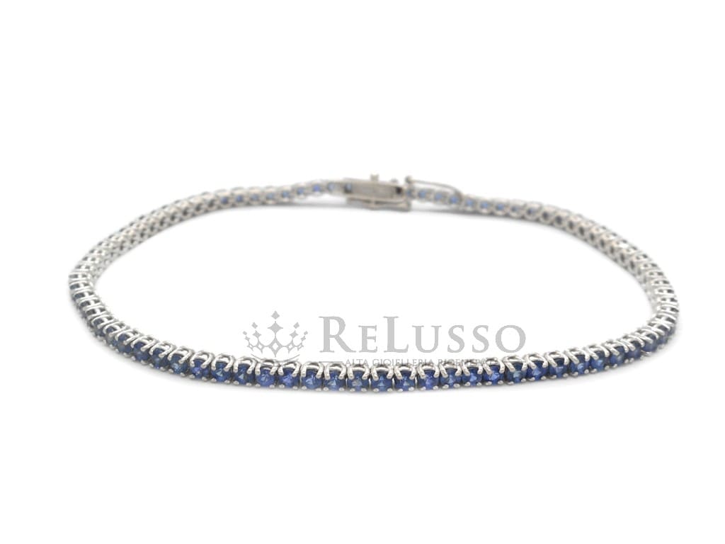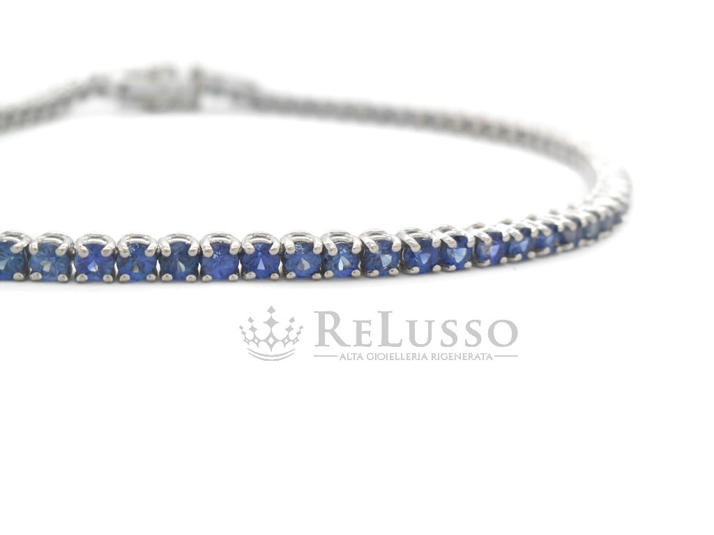 Bracelet Tennis avec 4,15 ct de saphirs bleus en or blanc 18 carats.