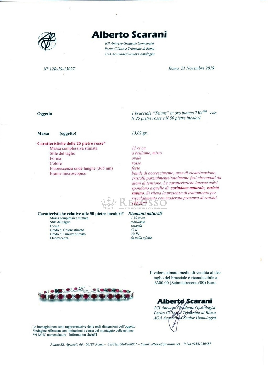 Bracelet tennis en or blanc avec rubis 12 carats et diamants