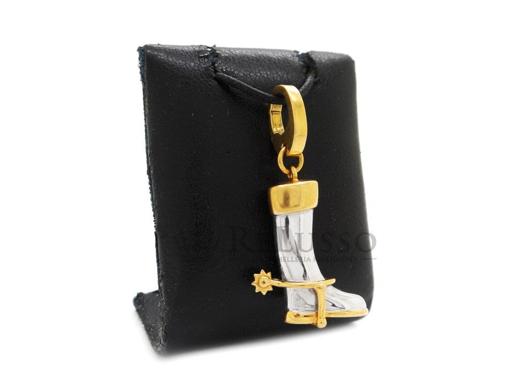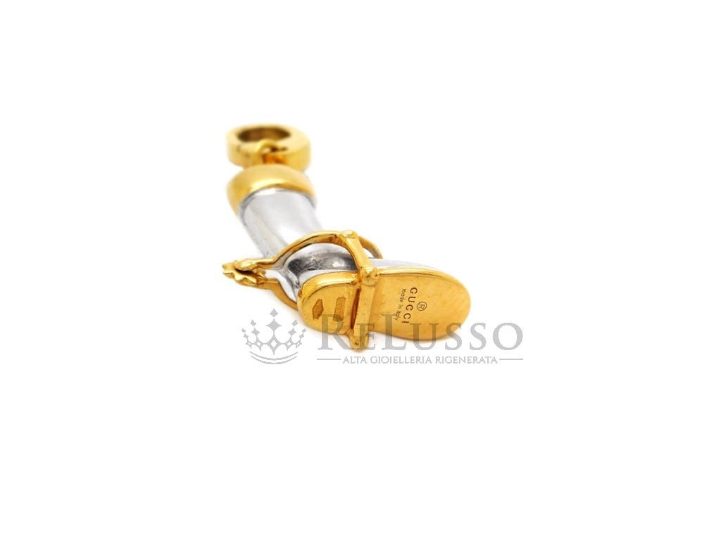 Pendentif Gucci en forme de botte à éperon en or jaune et blanc 18 carats.