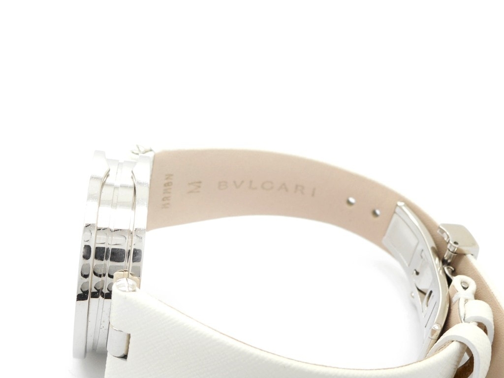 Montre Bulgari B.Zero1 en acier et or, modèle référence BZ P 35 S.Double Coeur, cadran nacre, boitier acier 35 mm, verre saphir, mouvement quartz, bracelet cuir blanc d’origine tout juste acheté en boutique et jamais porté.