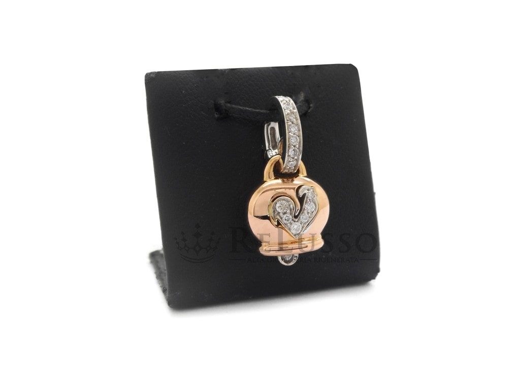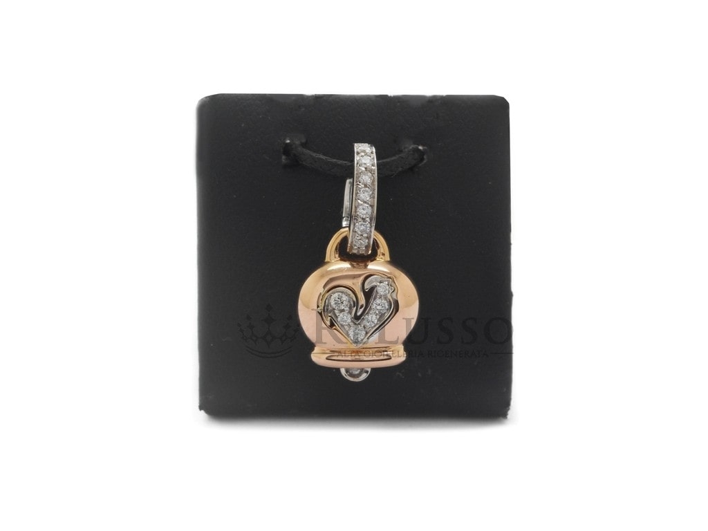 Charm Chantecler Campanella petit modèle en or rose 18Kt, diamants et coq pavé de diamants