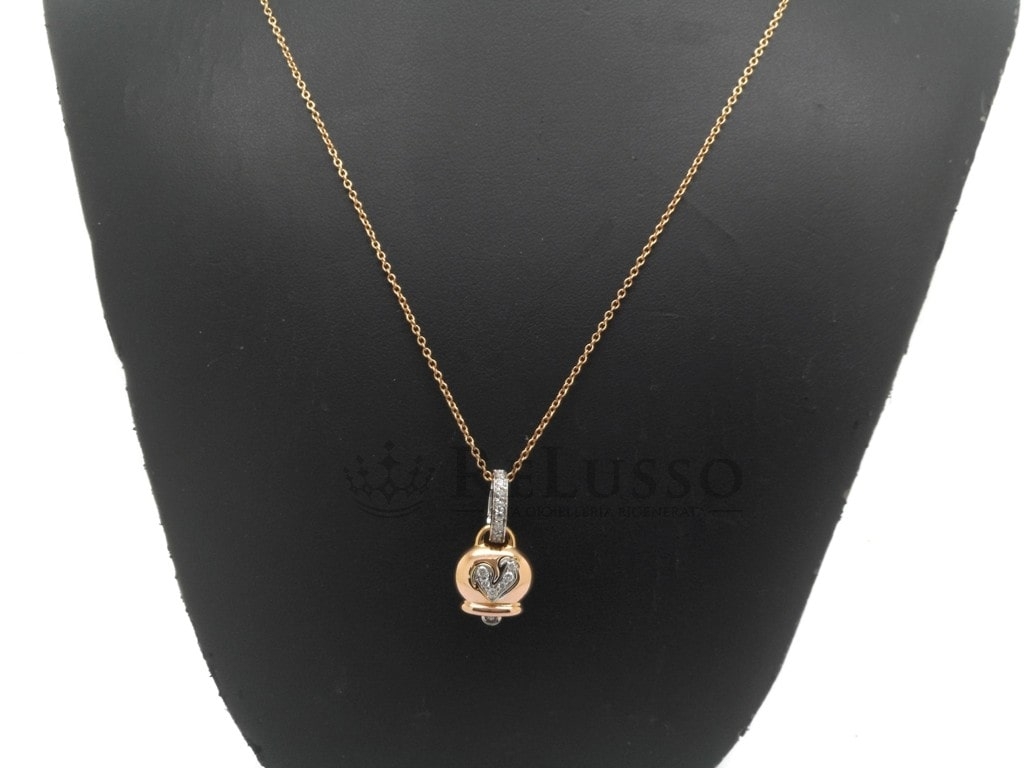 Pendentif Chantecler de la célèbre collection Campanelle, petit modèle, en or rose 18Kt, diamants et coq pavé de diamants pour 0,17ct. Le collier est vendu séparément.