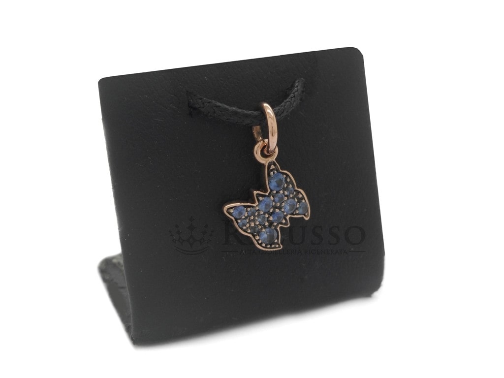 Charme Dodo Farfallaen or rose 9 ct avec saphirs bleus. Le breloque papillon est le complément idéal pour enrichir et personnaliser les colliers et bracelets Dodo.