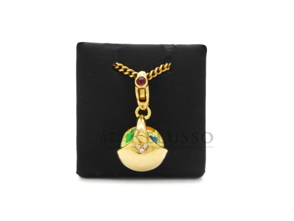 Charme Pasquale Bruni Cestino avec émail et diamants en or jaune 18 ct.