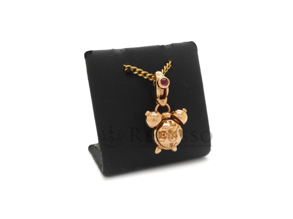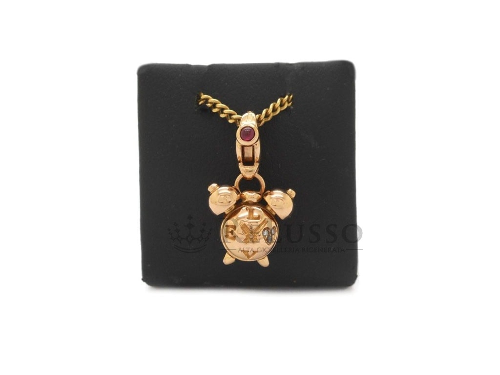 Charm Pasquale Bruni en or rose 18k en forme de réveil agrémenté de 3 petits diamants et d’un rubis taille cabochon sur le fermoir. Le Charm provient de la célèbre collection Amore et est le complément idéal pour enrichir et personnaliser les bracelets et colliers Pasquale Bruni.