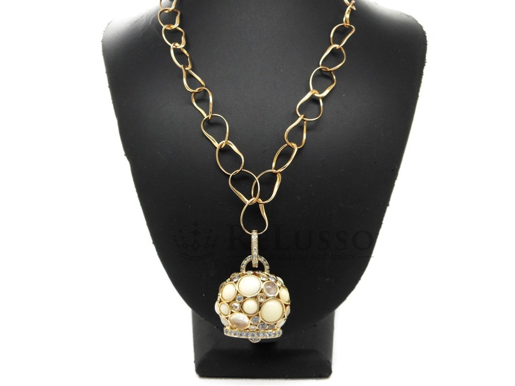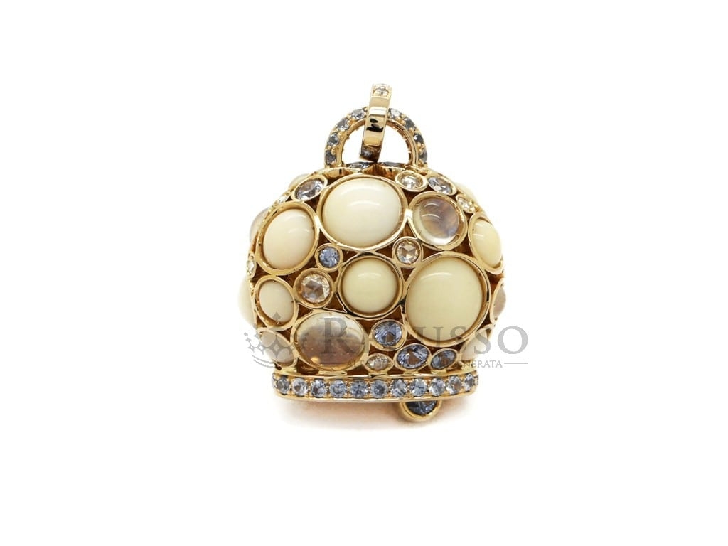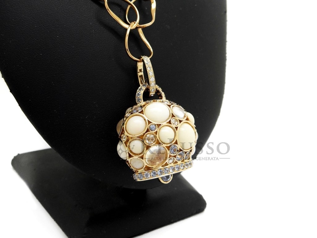 Grand pendentif Chantecler Campanella en or blanc 18 ct avec 0,70 ct de diamants, 0,24 ct de saphirs, kogolongs et labradorites. Le collier est vendu séparément.