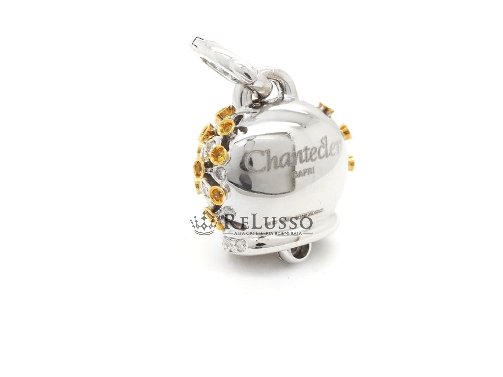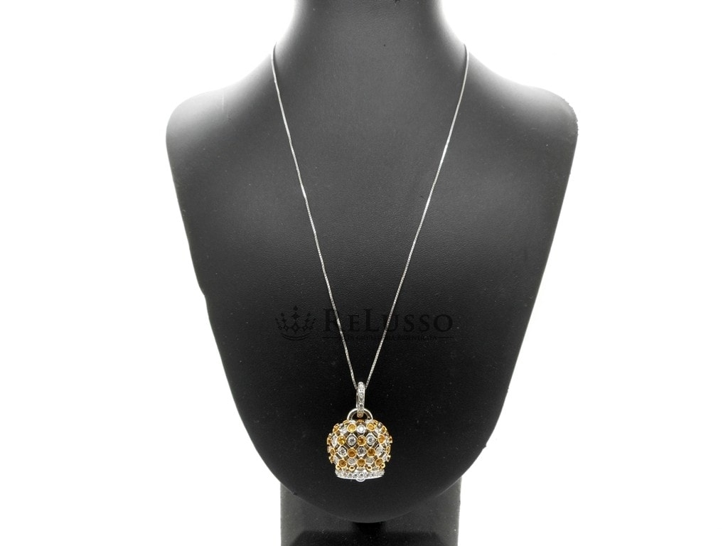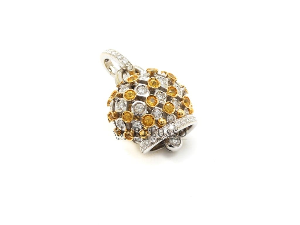 Pendentif cloche Chantecler, modèle Grillage taille Large, en or blanc 18 ct avec 0,90 ct de saphirs jaunes et 1,05 ct de diamants taille brillant.