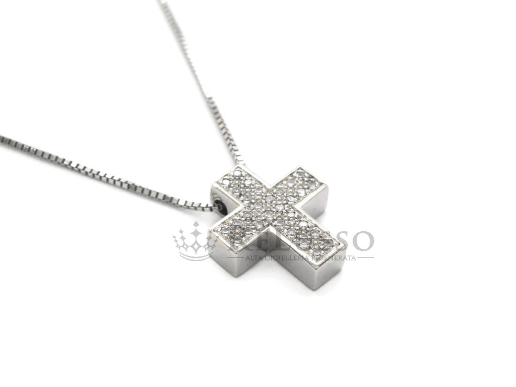 Collier avec croix de Salvini en or blanc et diamants pour 0,21 ct