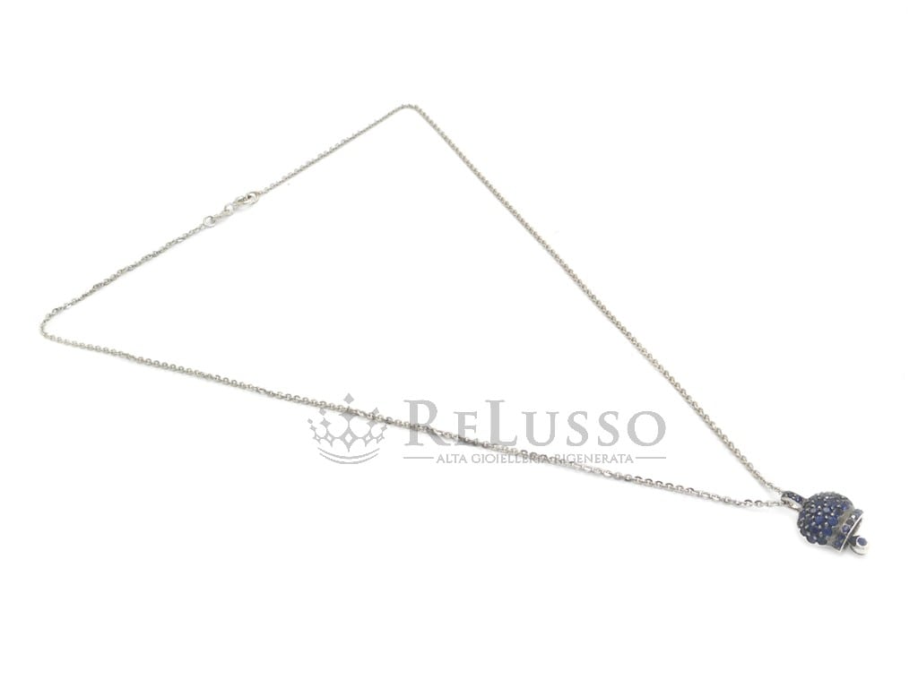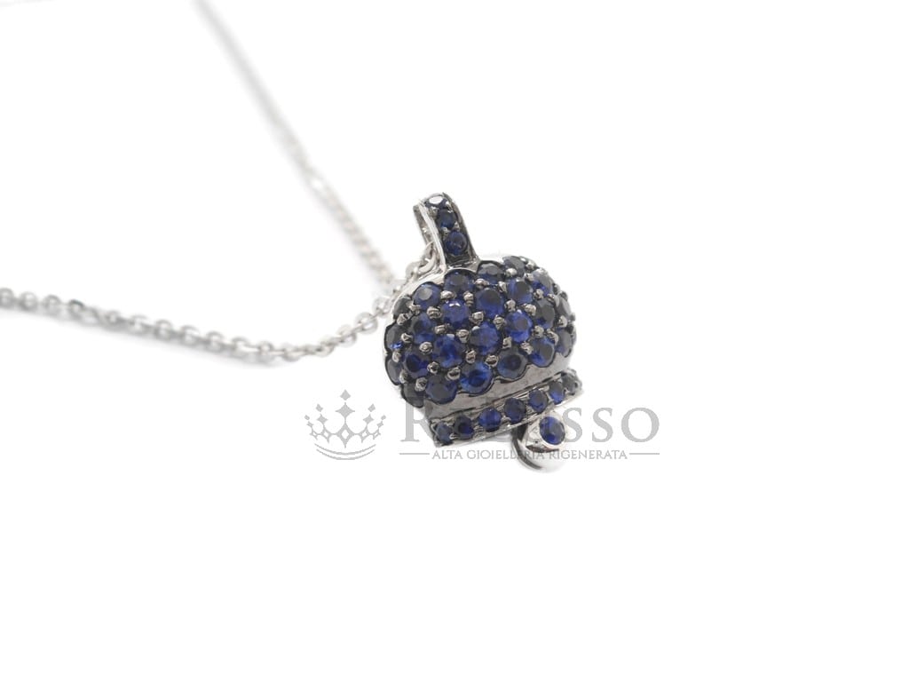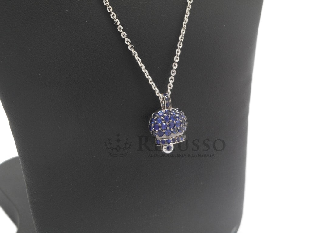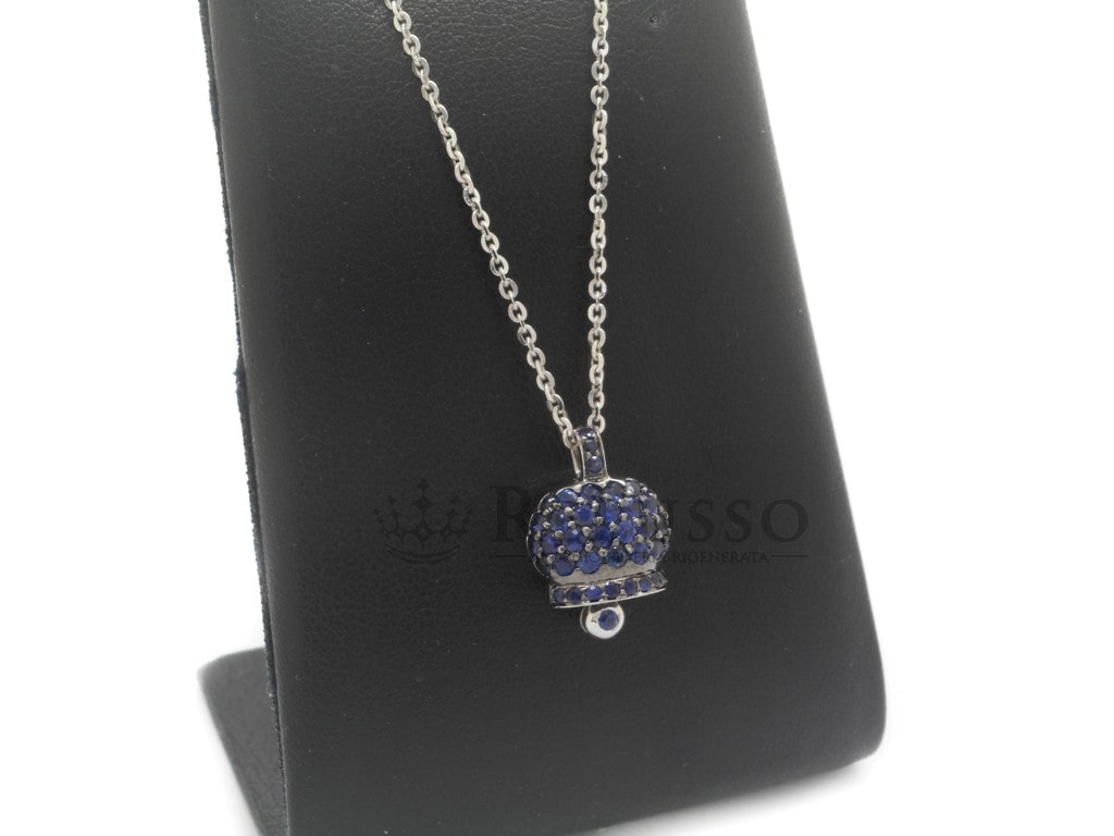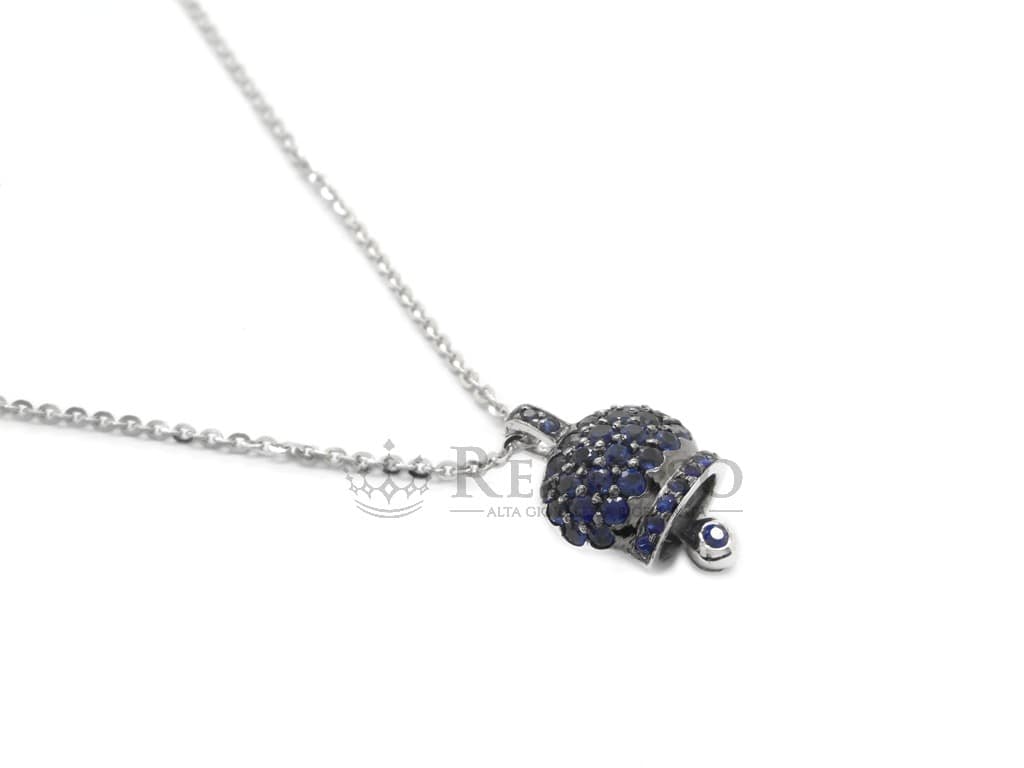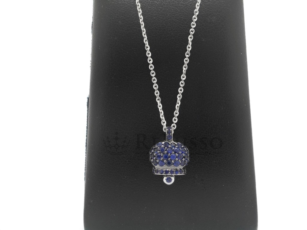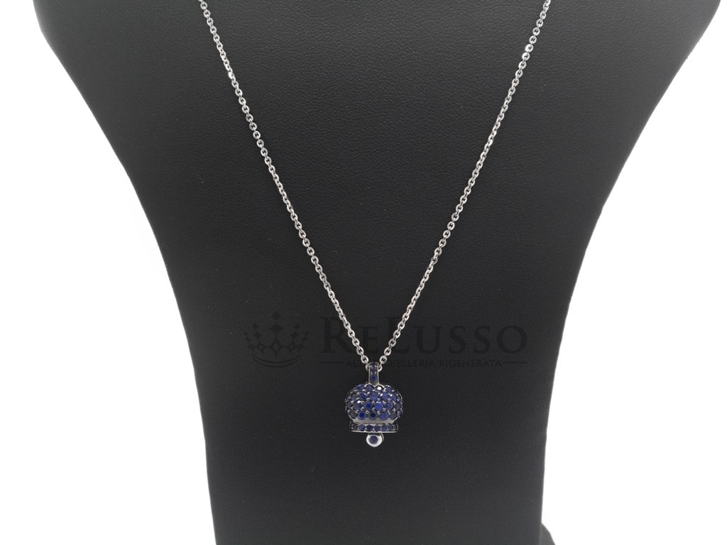 Collier avec pendentif Campanella en or blanc 18 carats avec 0,80 ct de saphirs bleus.