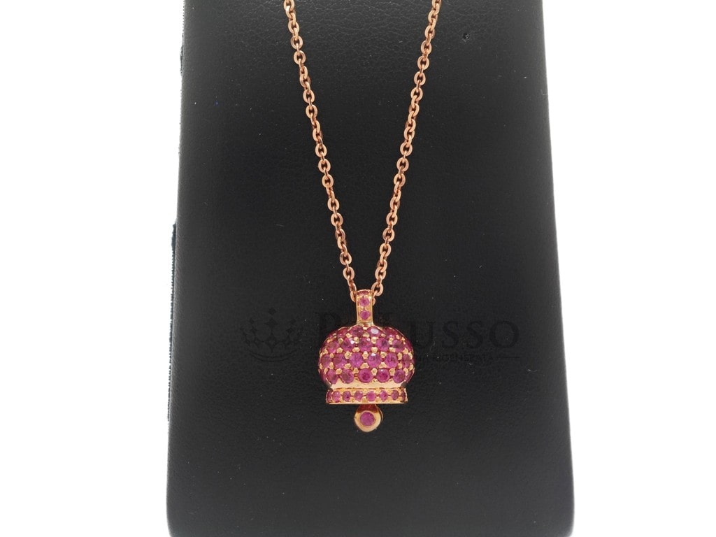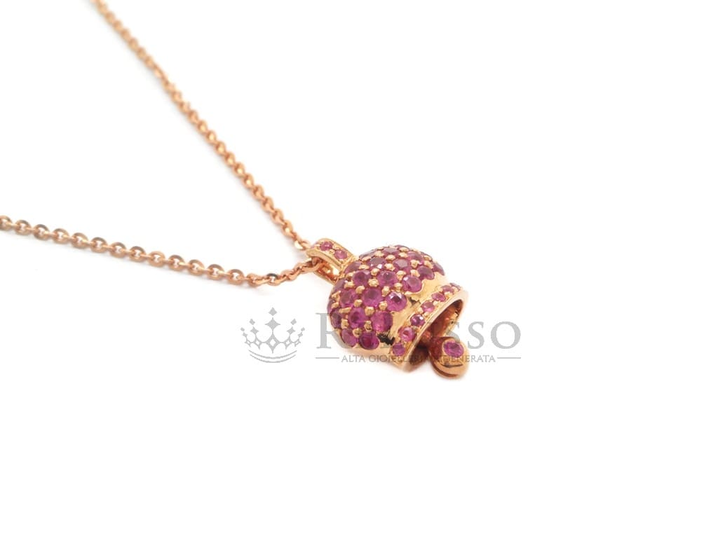 Collier avec pendentif Campanella en or rose 18 carats avec 0,80 ct de saphirs roses.