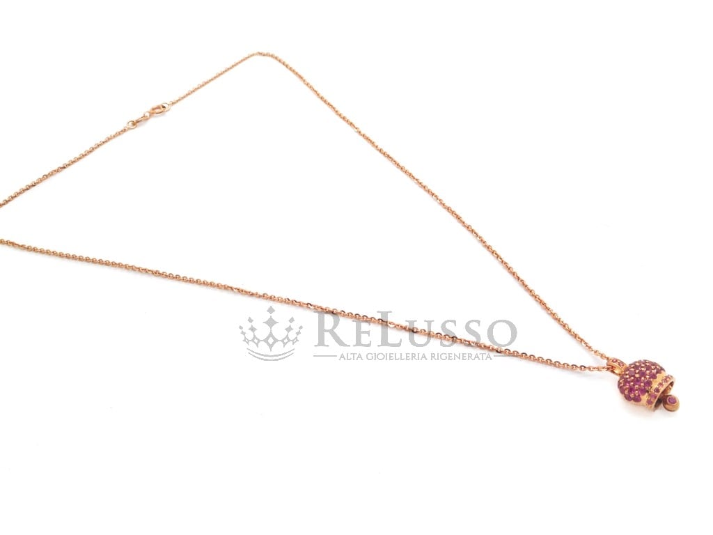 1 avis pour Collier avec pendentif Campanella en or rose 18 carats avec 0,80 ct de saphirs roses.