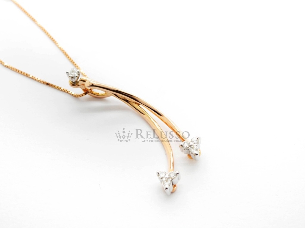 Collier avec pendentif ReCarlo en or rose 18kt avec 7 diamants taille brillant pour un poids estimé à 0,15ct