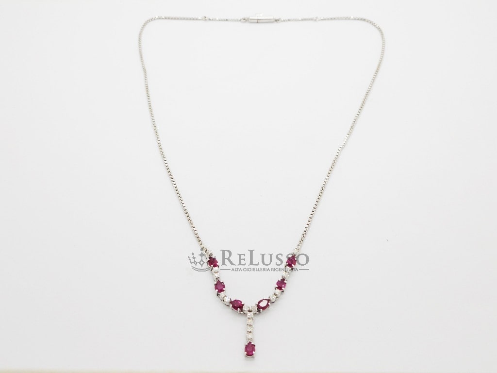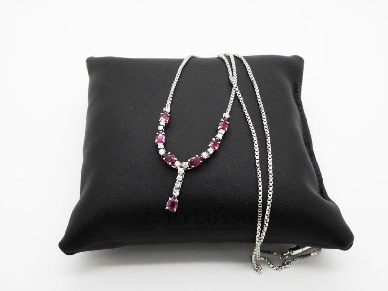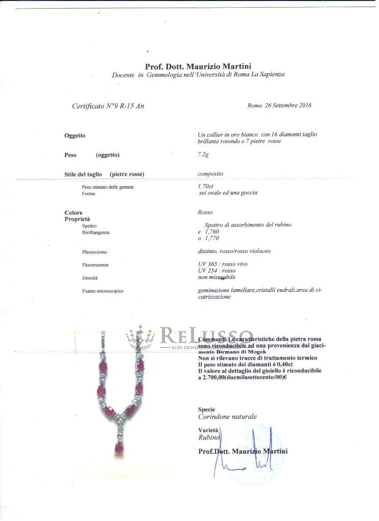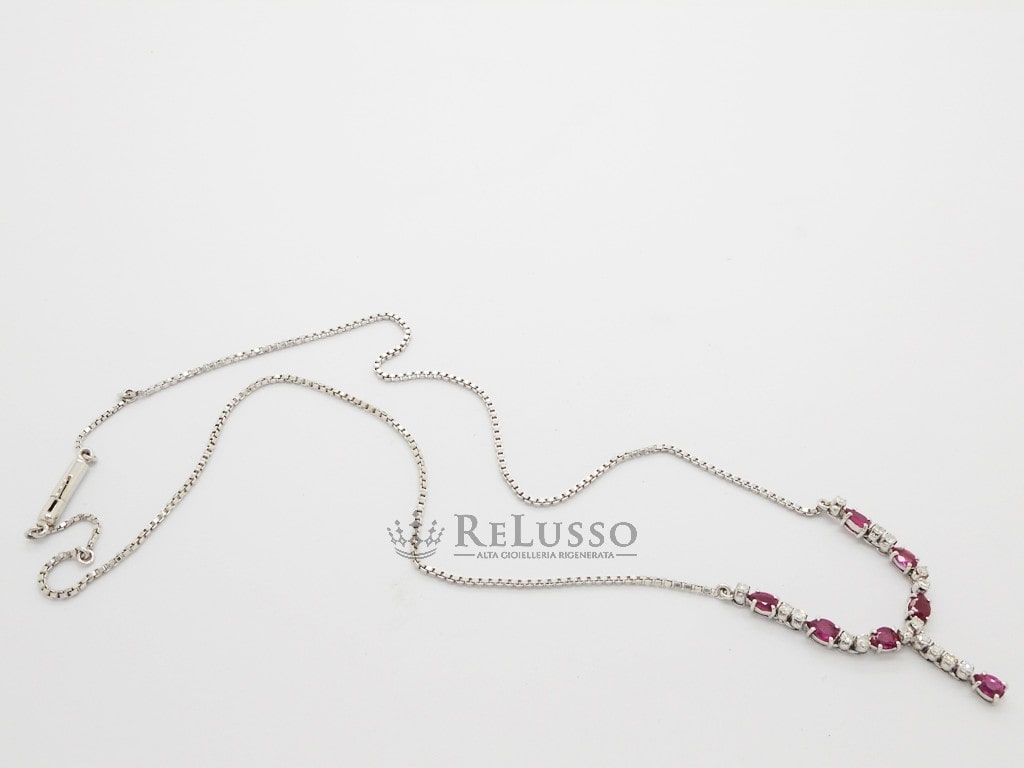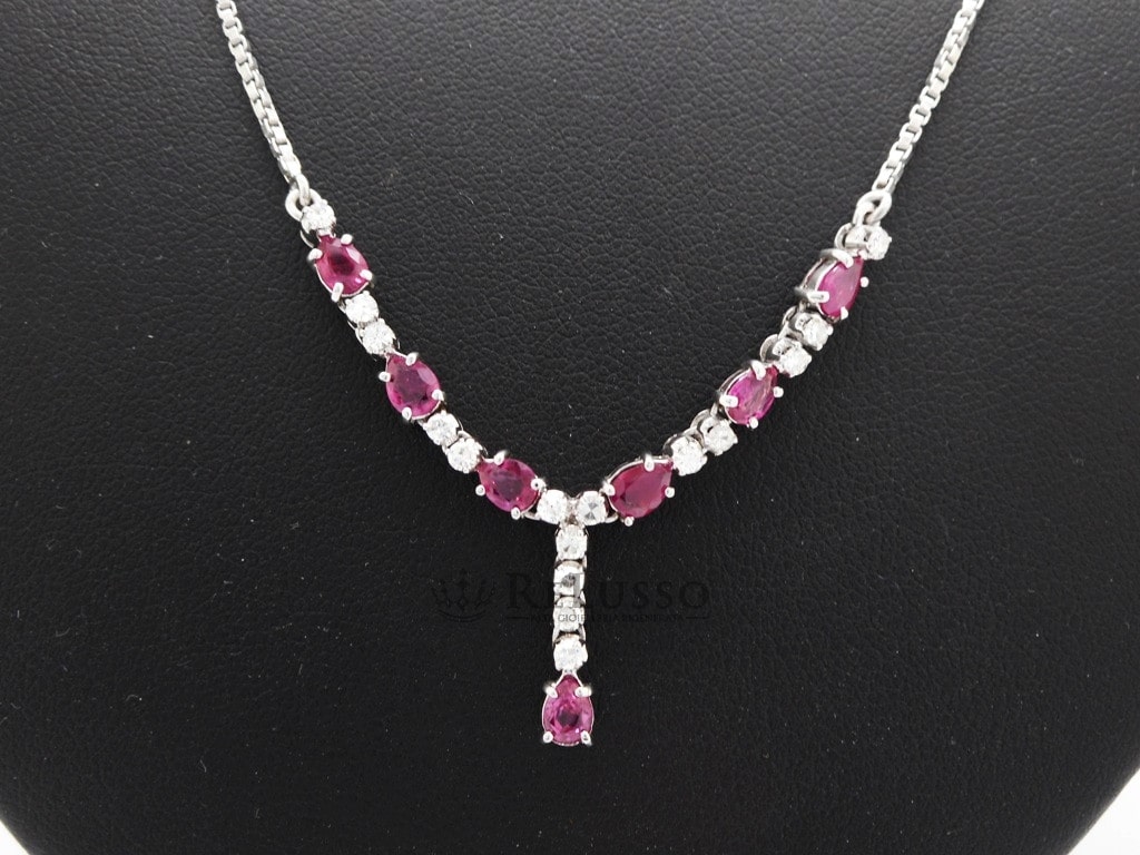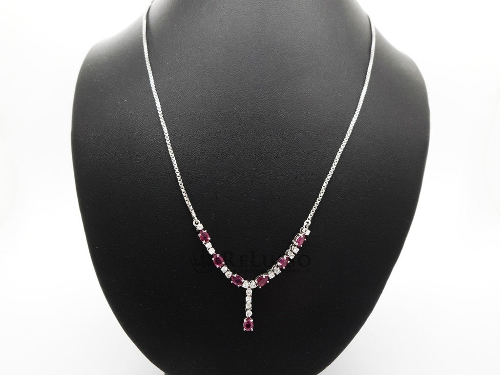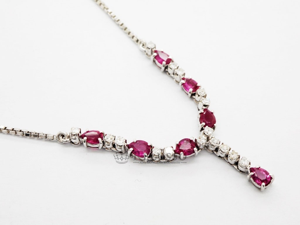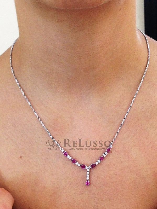 Collier en or blanc 18 kt avec 16 diamants taille brillant pour un total de 0,40 ct et 7 rubis de la mine birmane de Mogok, pour un total de 1,70 ct.