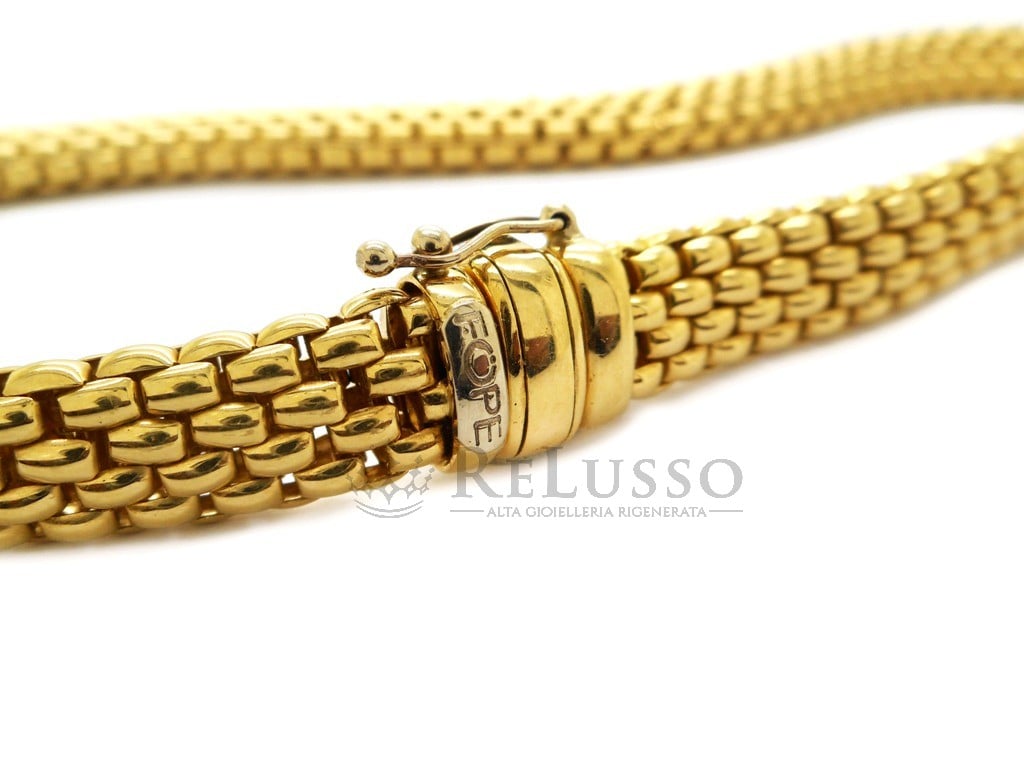 Collier FOPE en or jaune 18 carats. Longueur 43 cm pour un poids de 62,75 grammes.