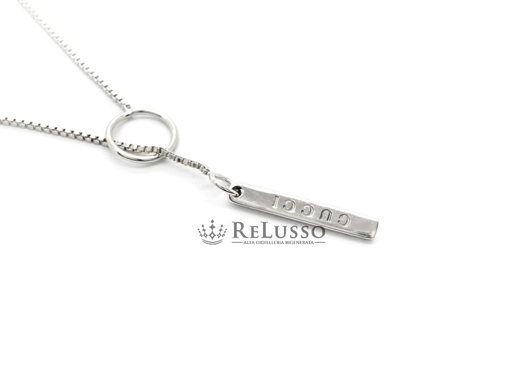 Collier loquet Gucci avec plaque en or blanc.