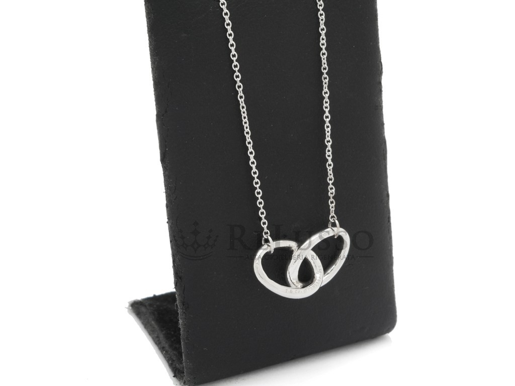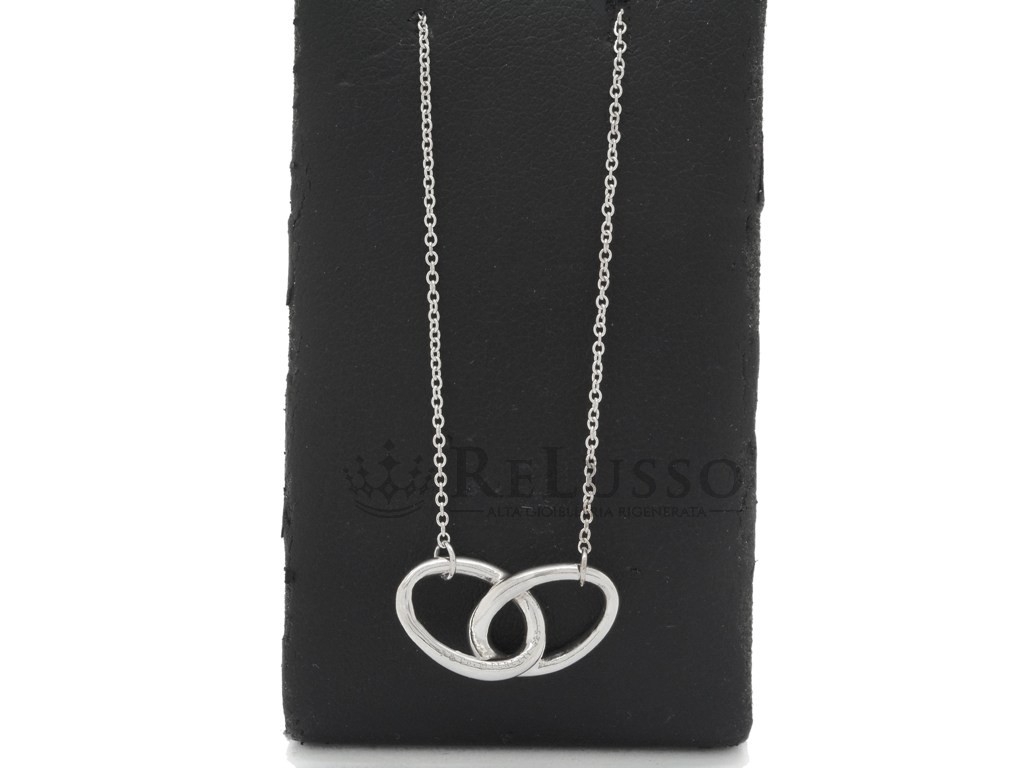 Collier Tiffany & co. avec pendentif avec ovales entrelacés en argent sterling 925. Le collier mesure 40,60 cm de long.