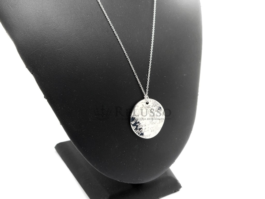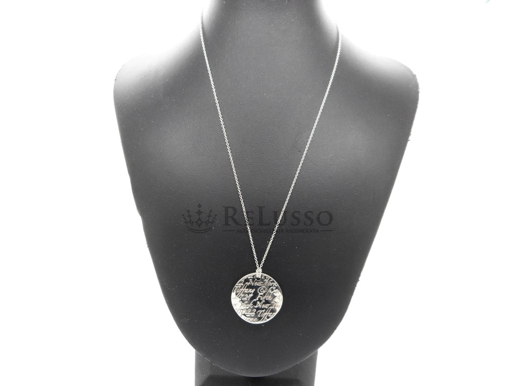 Collier Tiffany & Co. de 43,50 cm de long avec pendentif rond NOTES™, le tout en argent sterling 925, grande taille. Diamètre du pendentif 2,40cm.