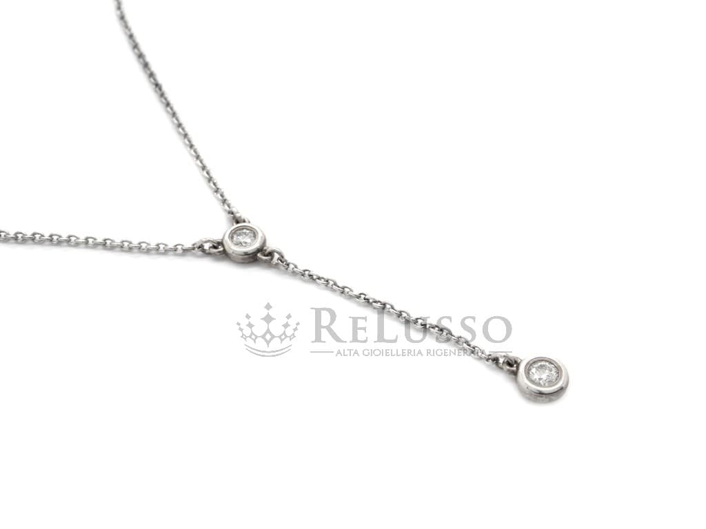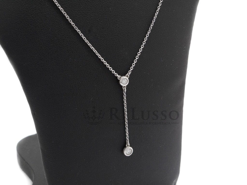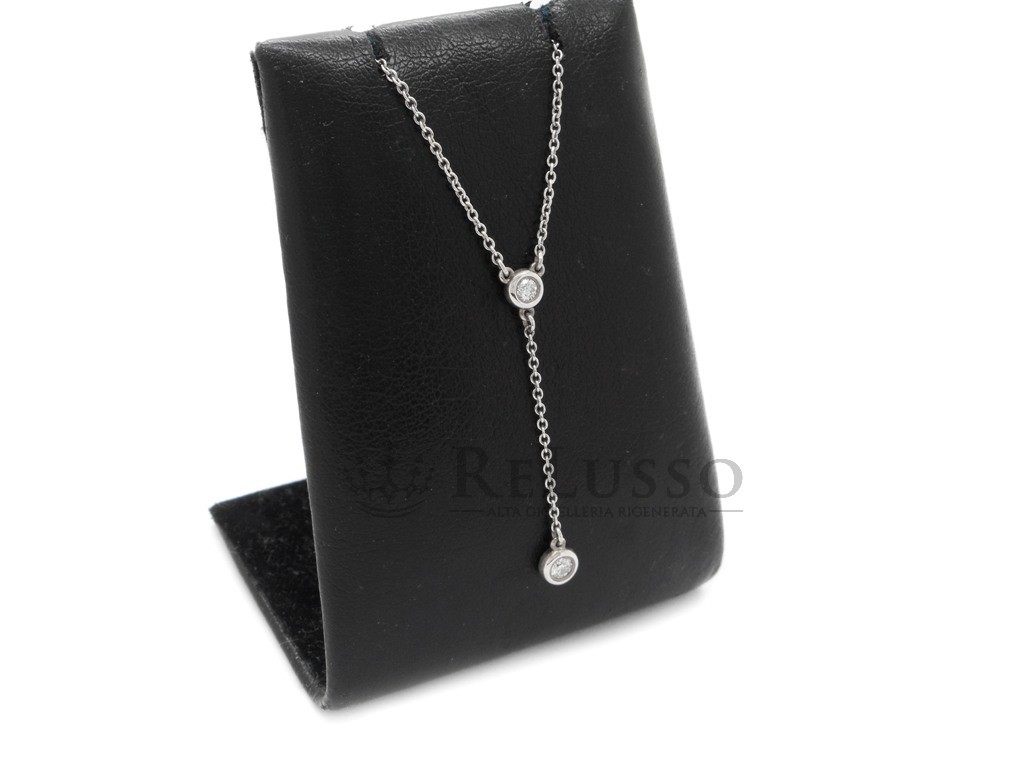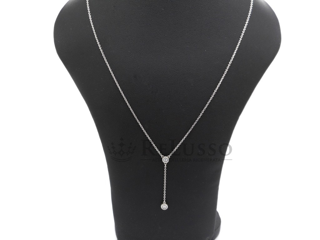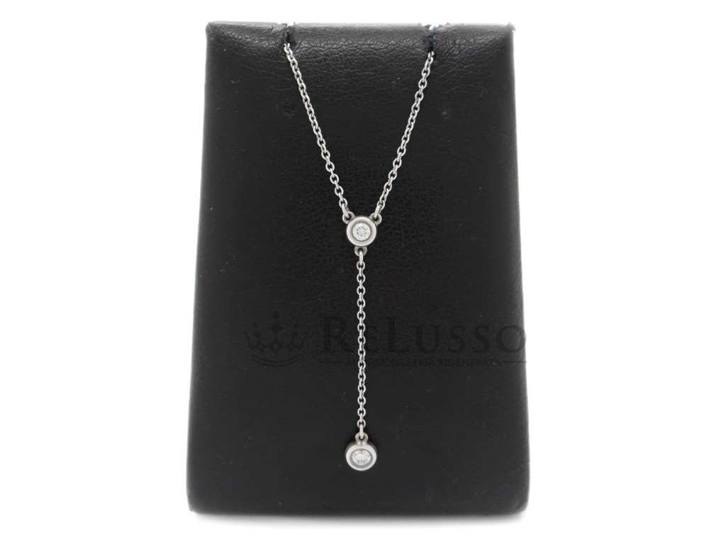 Collier Tiffany & Co. en argent sterling 925, de la collection Diamond by the Yard® par Elsa Peretti avec deux diamants taille brillant pour un poids total estimé à 0,12ct.