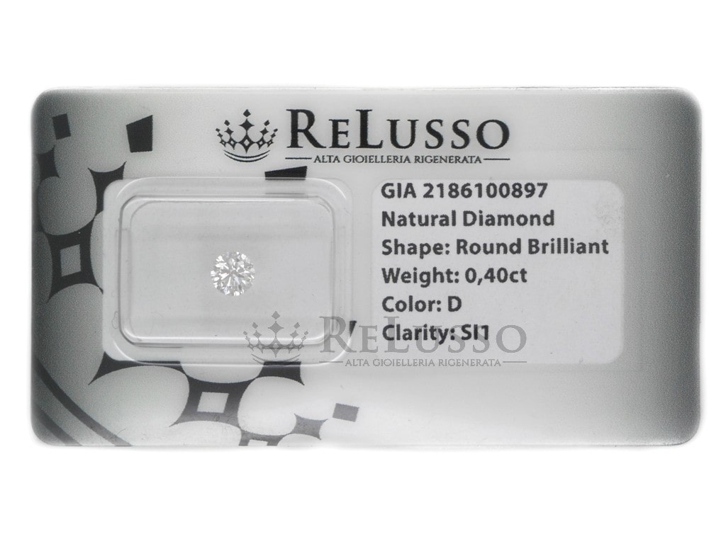 Diamant rond de 0,40 ct, taille brillant, emballé sous blister, couleur D, pureté SI1 Certifié par le GIA (Gemological Institute of America).