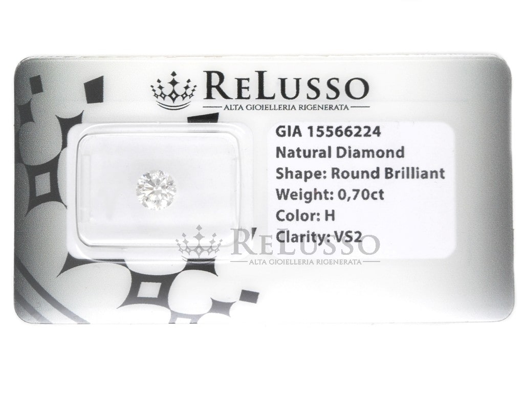 Diamant rond de 0,70 ct, taille brillant, emballé sous blister, couleur H, pureté VS2 Certifié par le GIA (Gemological Institute of America).