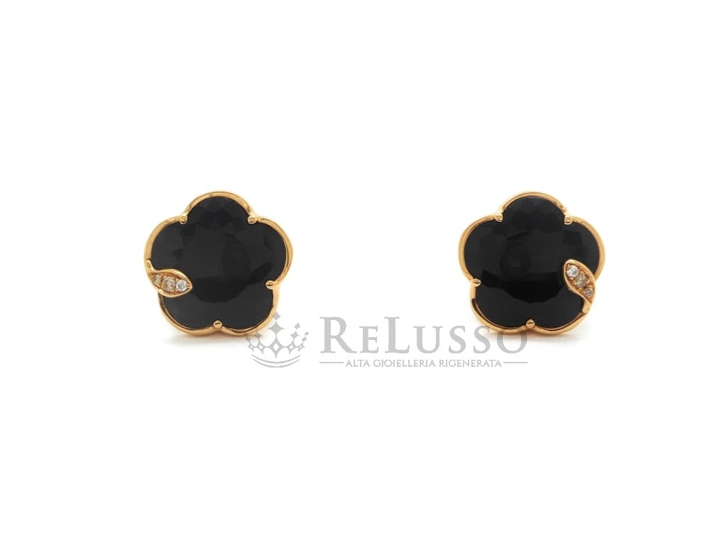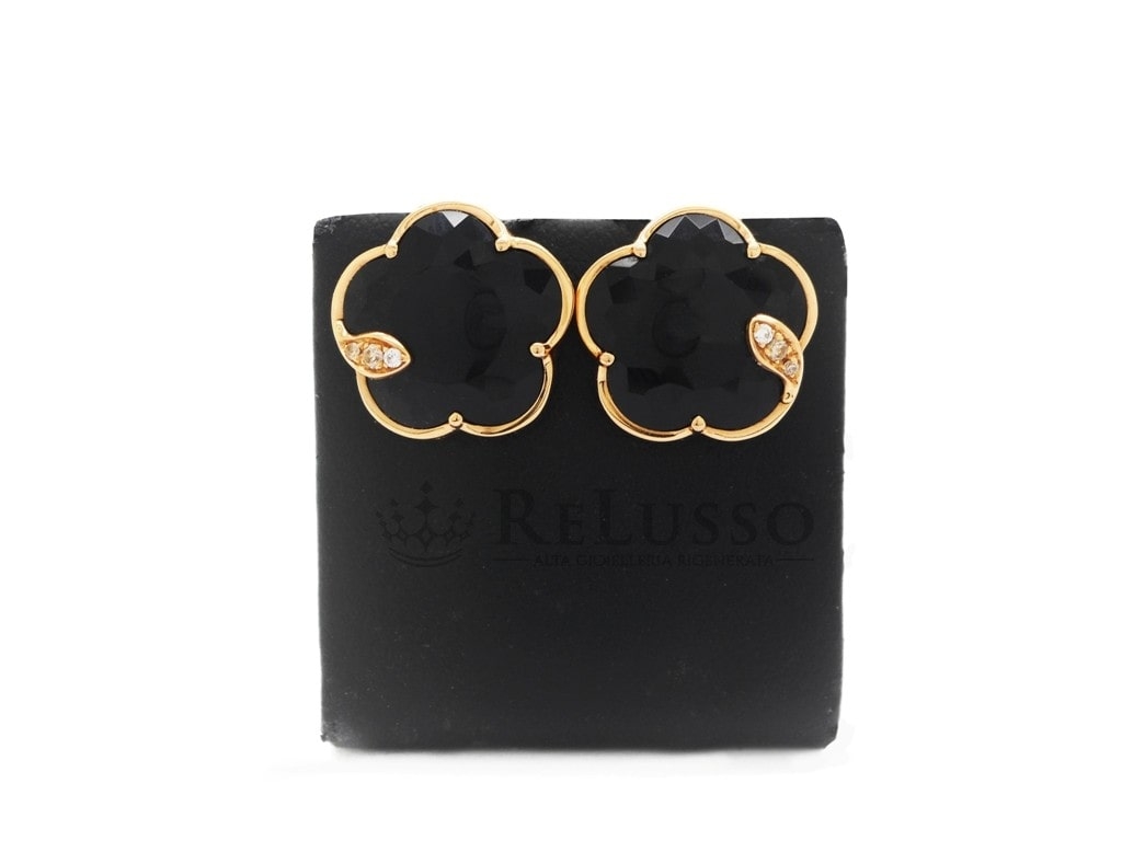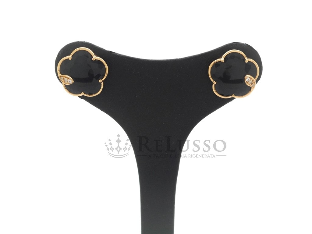 Boucles d’oreilles Pasquale Bruni de la collection Petit Joli en or rose 18kt avec Onyx et diamants pour un poids total de 0,06ct.