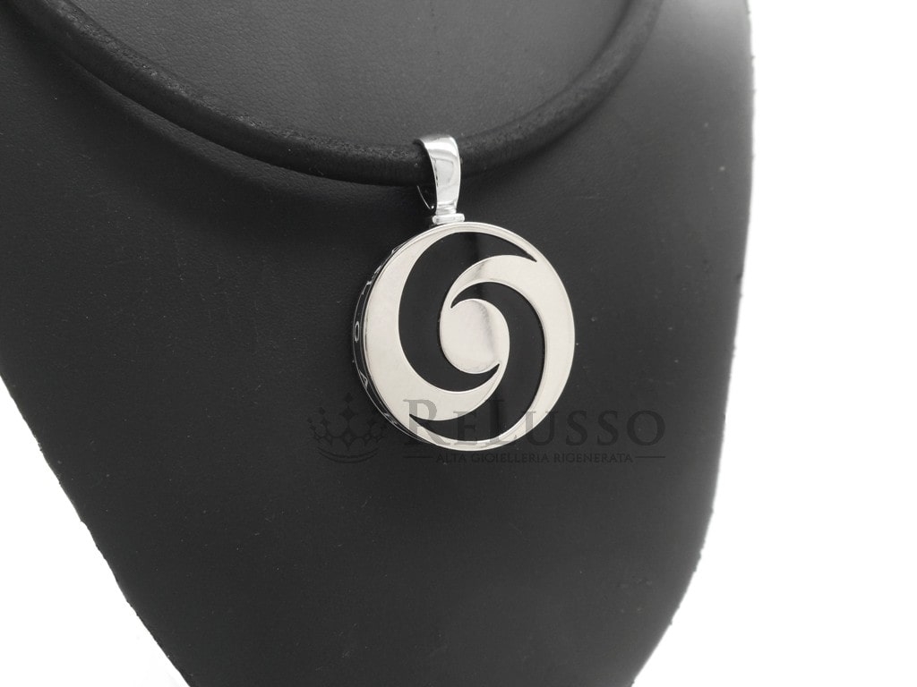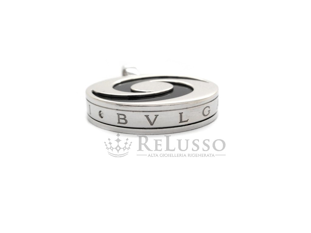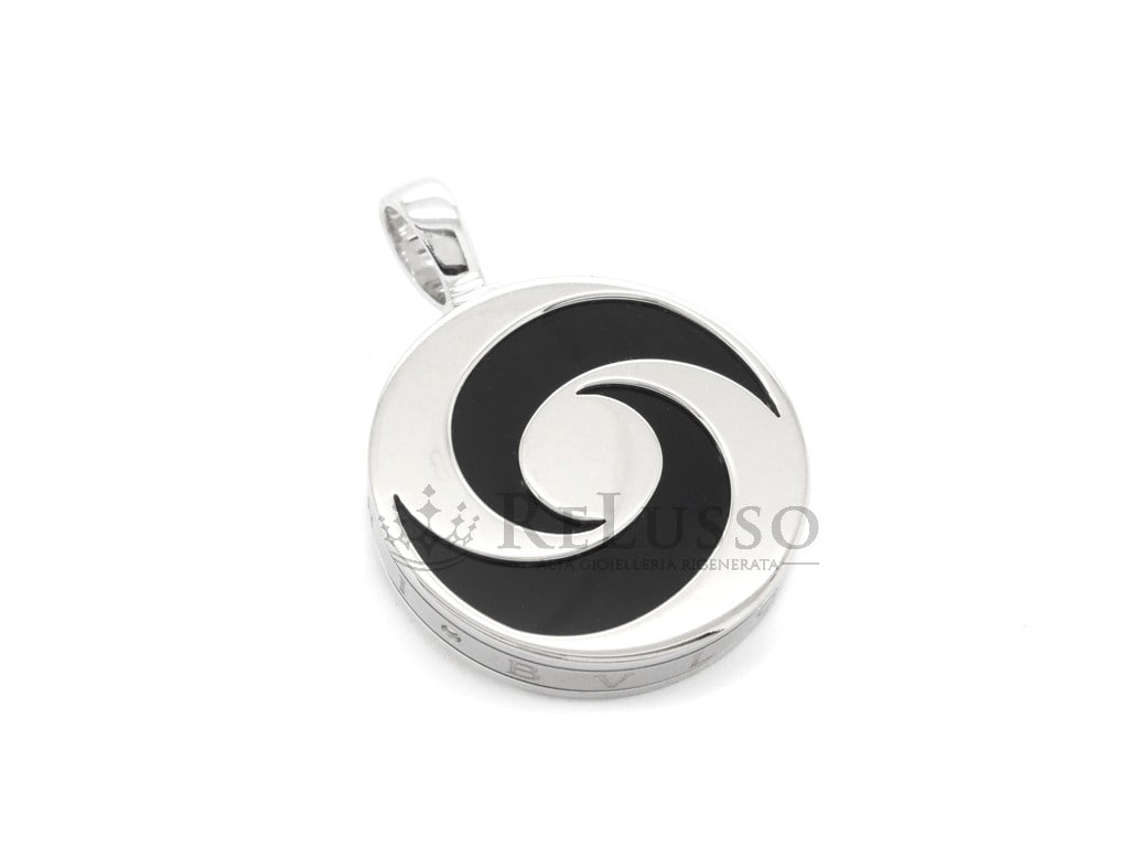 Pendentif Bulgari collection optique en or blanc et acier avec onyx