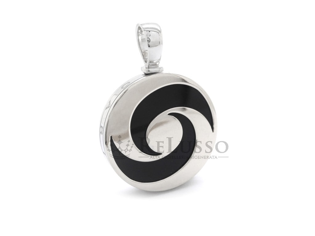 Pendentif Bulgari de la collection Optical en or blanc et acier avec onyx.