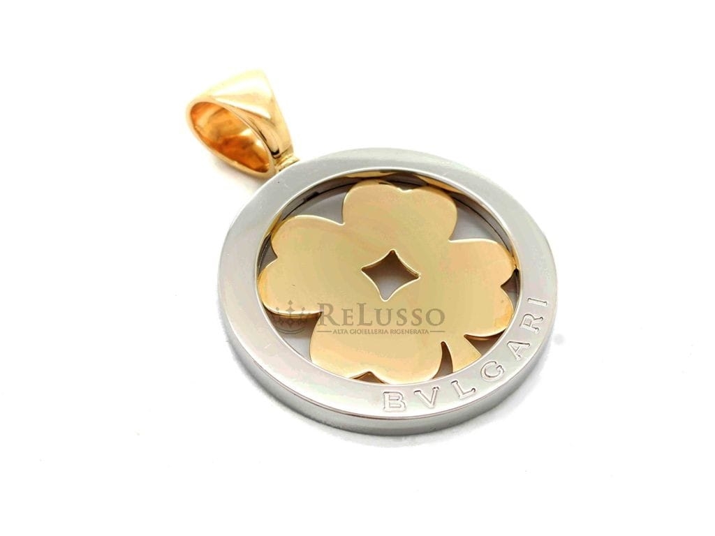 Pendentif rond Bulgari Quadrifoglio en acier et or jaune 18kt.